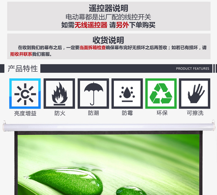 • 商品名称:莱特斯 120寸 16:10 电动挂幕投影仪电动遥控幕布 移动支架幕布投影屏幕 电动白朔遥控幕 (120寸 16:10)