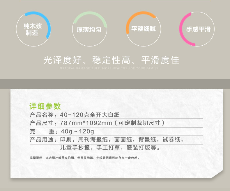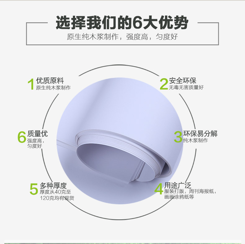 • 商品名称:安兴 787*1092mm 全开白纸 40g大白纸 全木浆大白纸无碳原纸