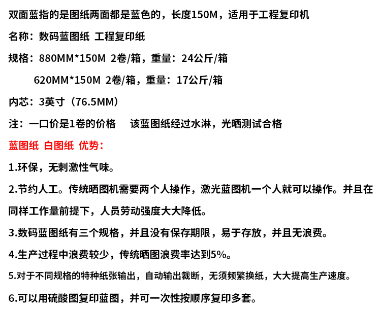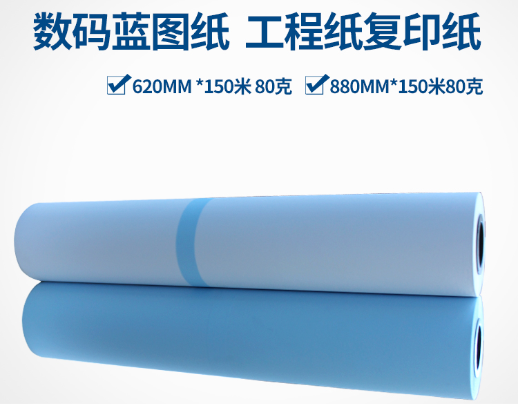 • 商品名称:银座 激光蓝图纸 数码工程纸 A1 80G 工程绘图复印纸/CAD设计制图纸 (620mm*150m 2卷/箱)