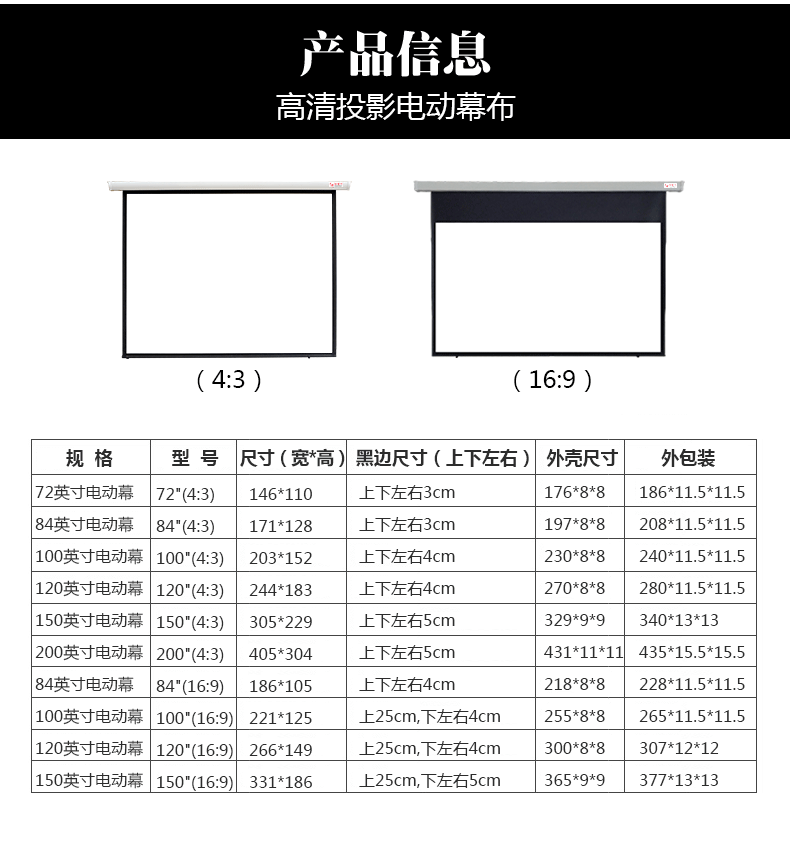 • 商品名称:红杉叶 150寸16:10 电动挂幕 电动投影幕布投影仪机幕布屏