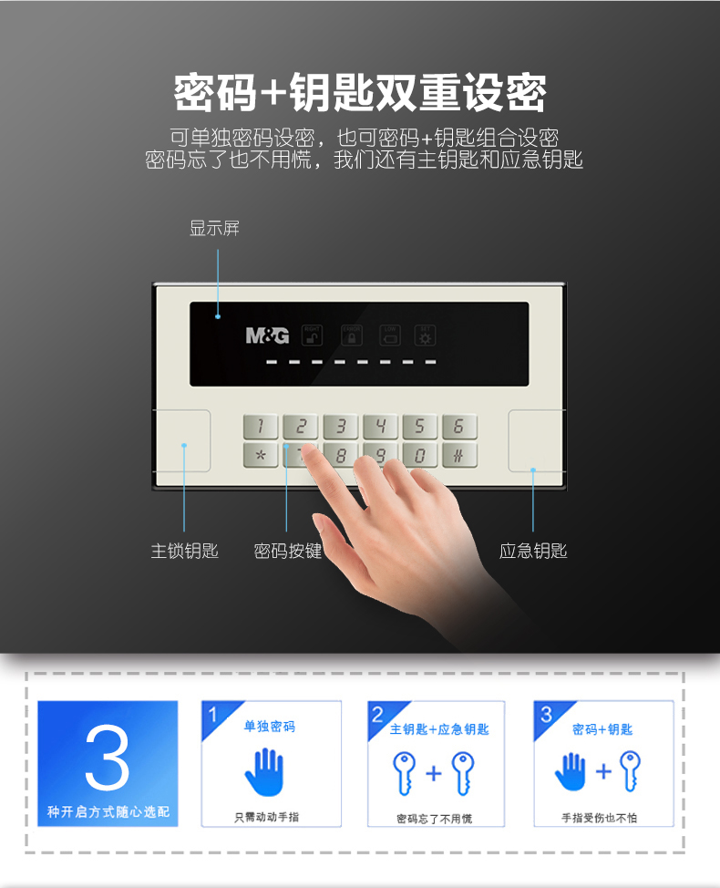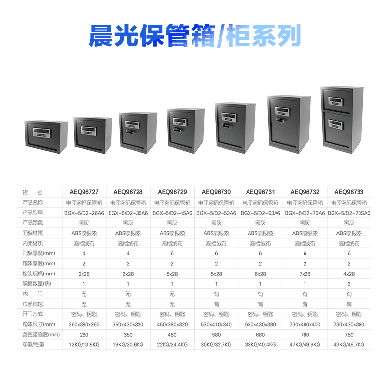 • 商品名称:晨光(M&G) AEQ96730 电子密码保管箱BGX-5/D2-53A6 办公家用保管柜保险柜 H53cm