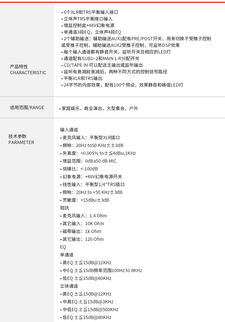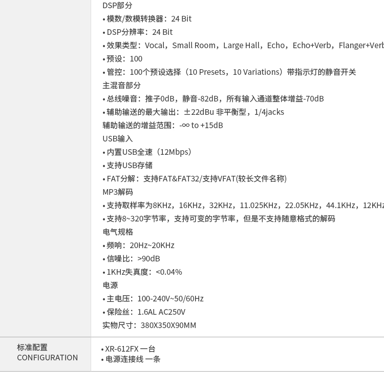 • 商品名称:得胜 XR-612FX XR-612FX 调音台 12路调音台十二路 100个预设 6个XLR和 TRS平衡 输入接口