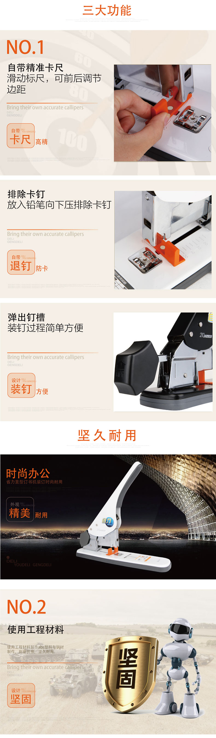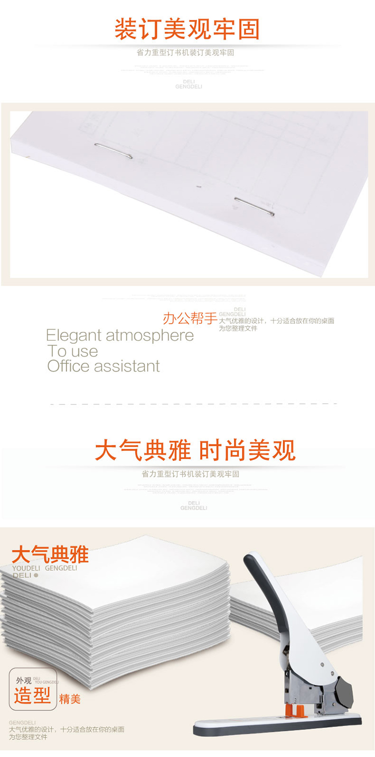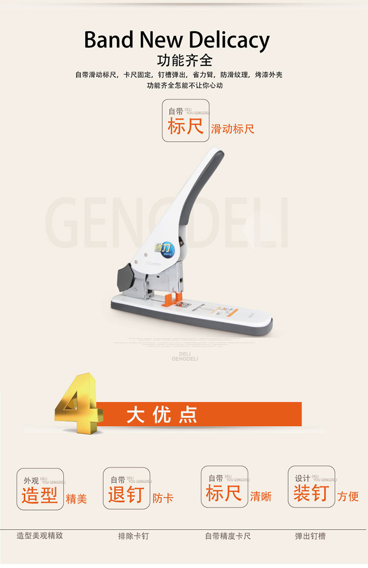 • 商品名称:得力(deli)0485 省力经济型厚层订书机 可订210页 白色