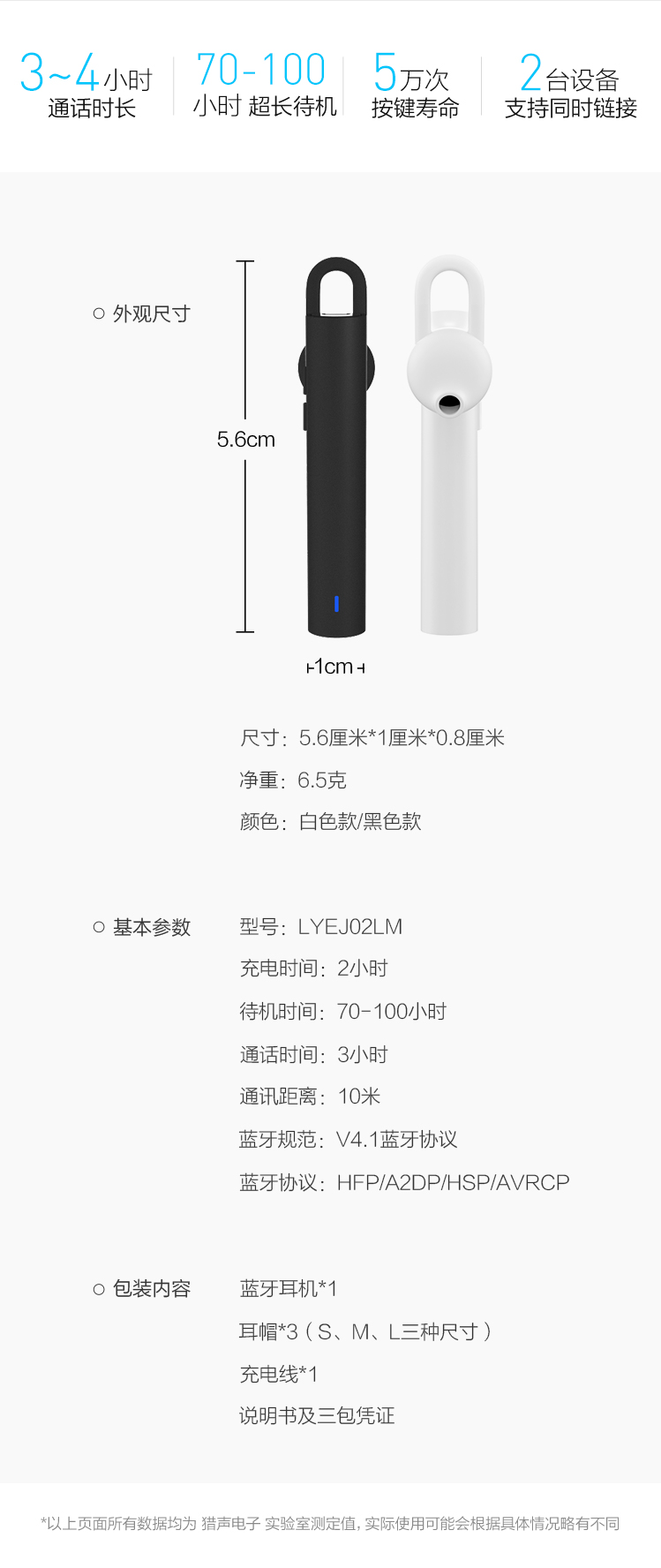 • 商品名称:小米(MI) 蓝牙耳机青春版-1 挂耳式无线运动 通用耳塞 (白色)