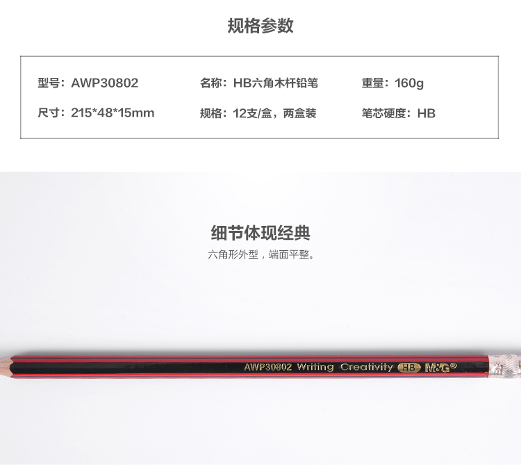 • 商品名称:晨光(M&G) AWP30802 儿童HB六角木杆木头铅笔
