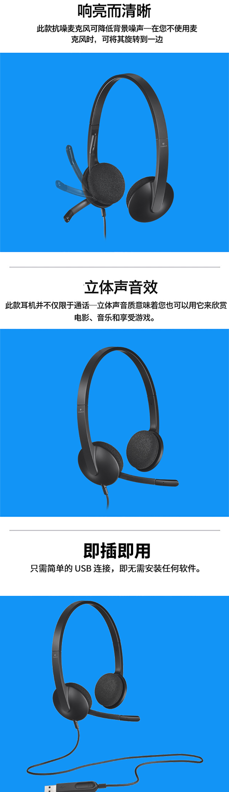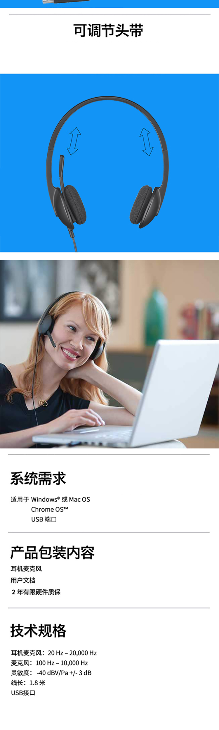 • 商品名称:罗技(Logitech) H340 笔记本台式电脑耳麦耳机麦克风 USB接口 可调节佩戴音乐