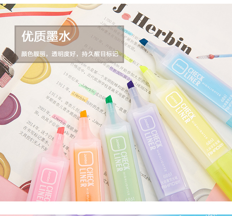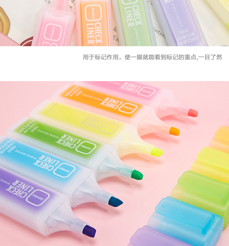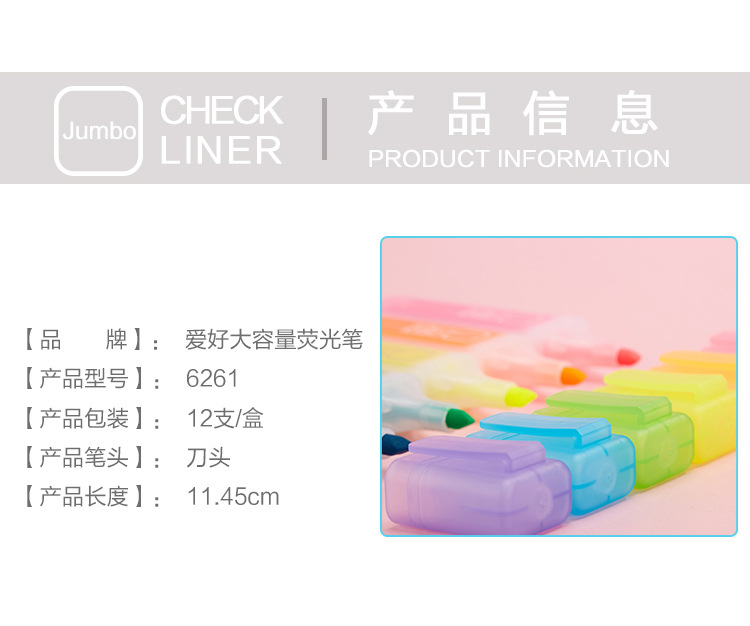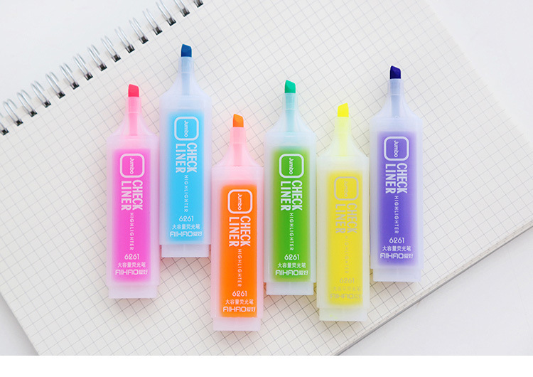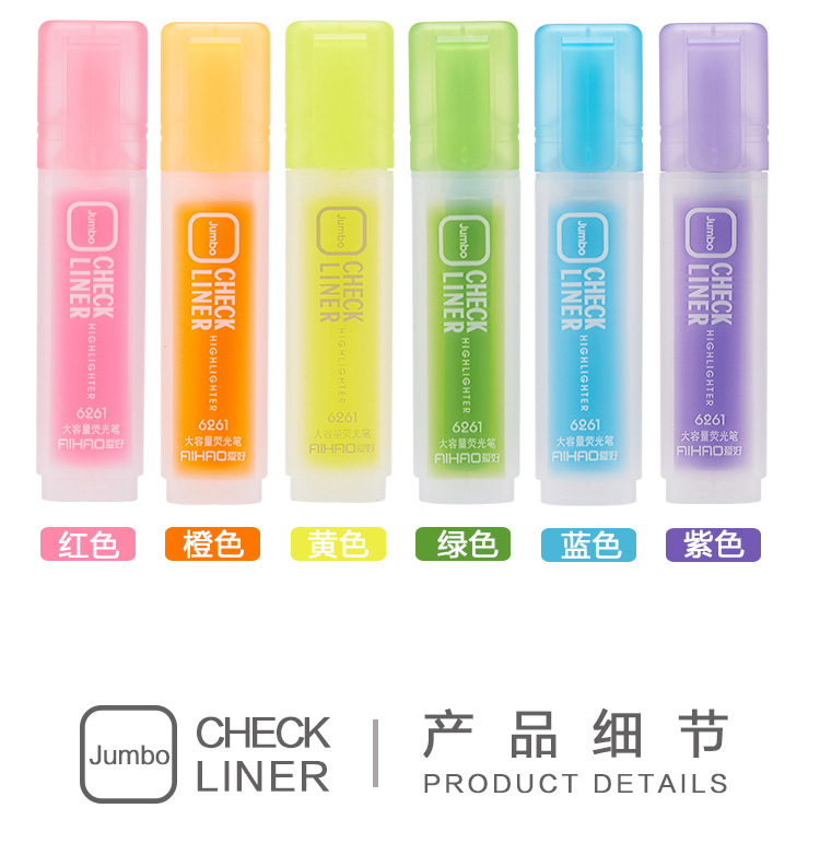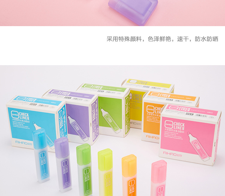 • 商品名称:爱好 6261 学生荧光笔斜头标记笔6色 创意彩色重点划线记号笔 (黄色)