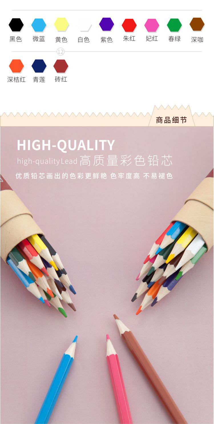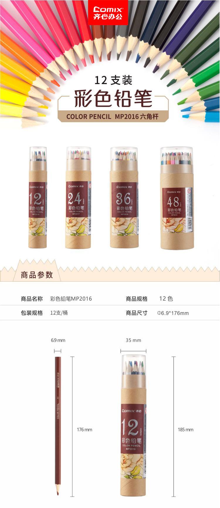 • 商品名称:齐心(Comix)MP2016 12色顺滑芯彩色铅笔 填色笔 彩铅 纸桶装