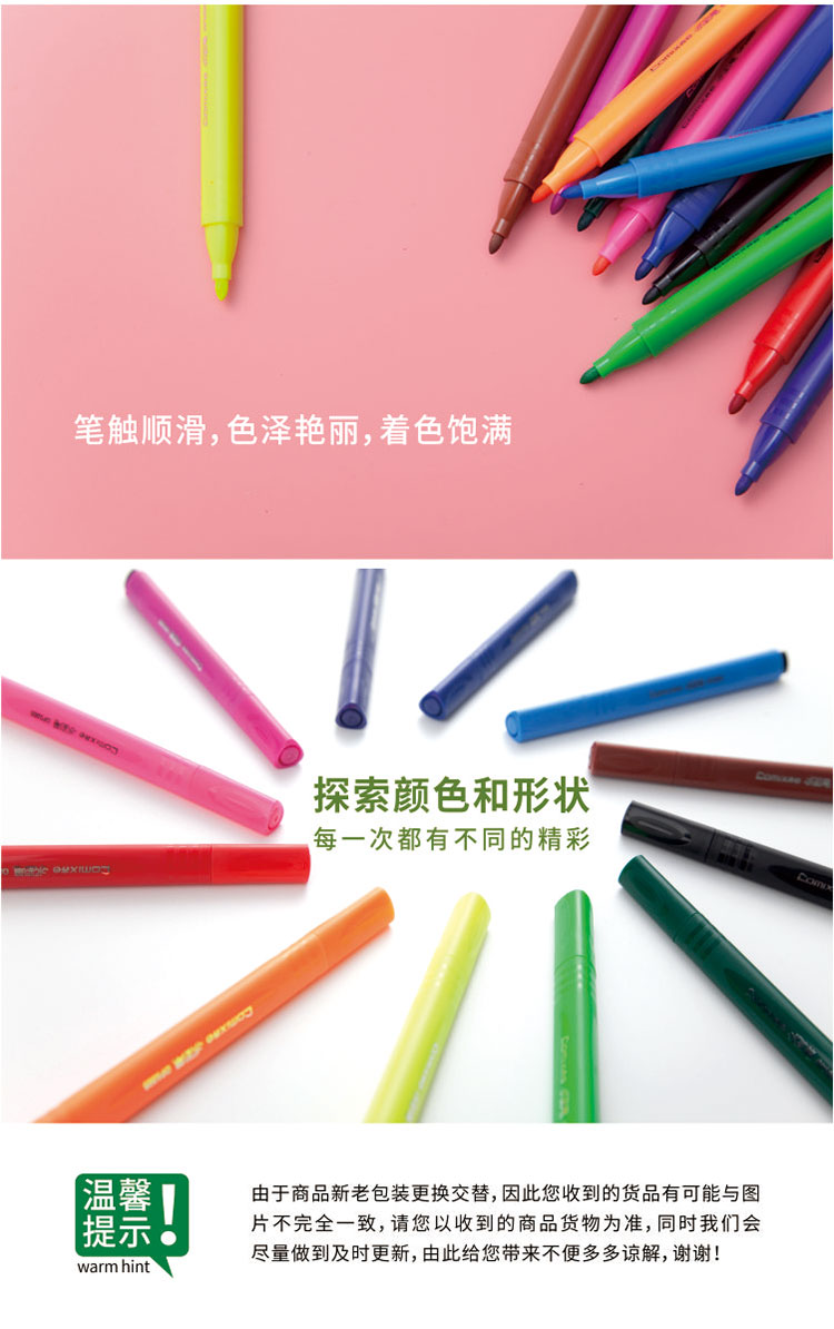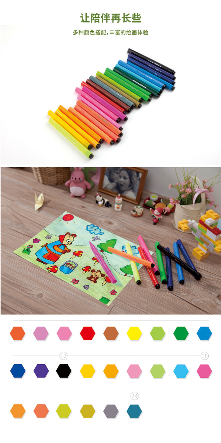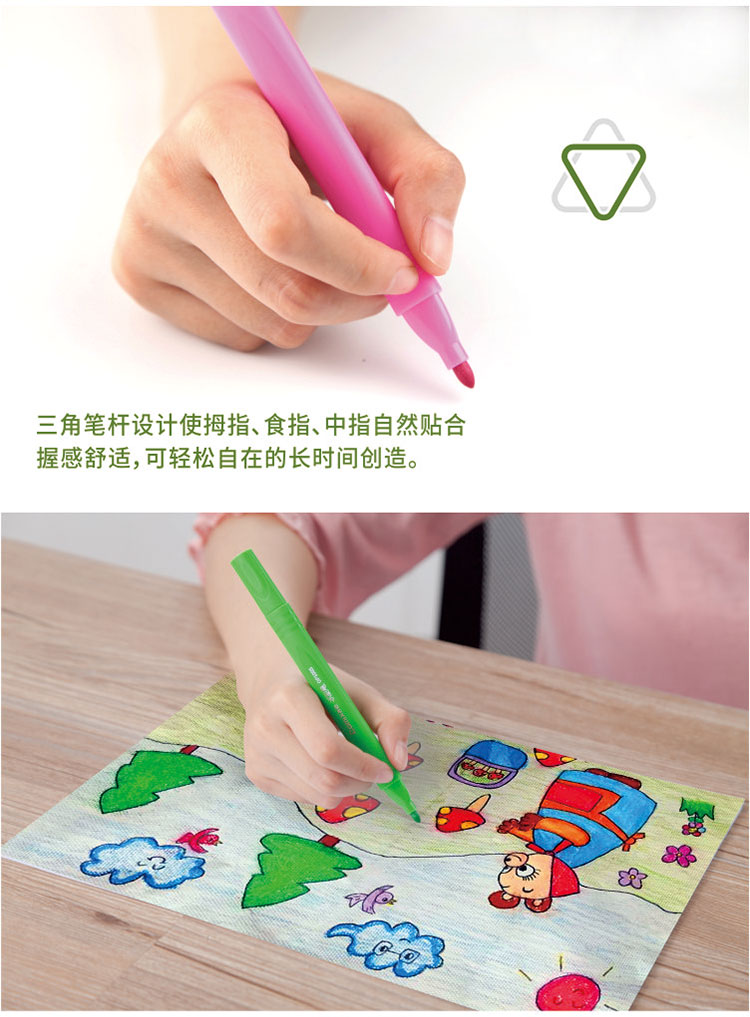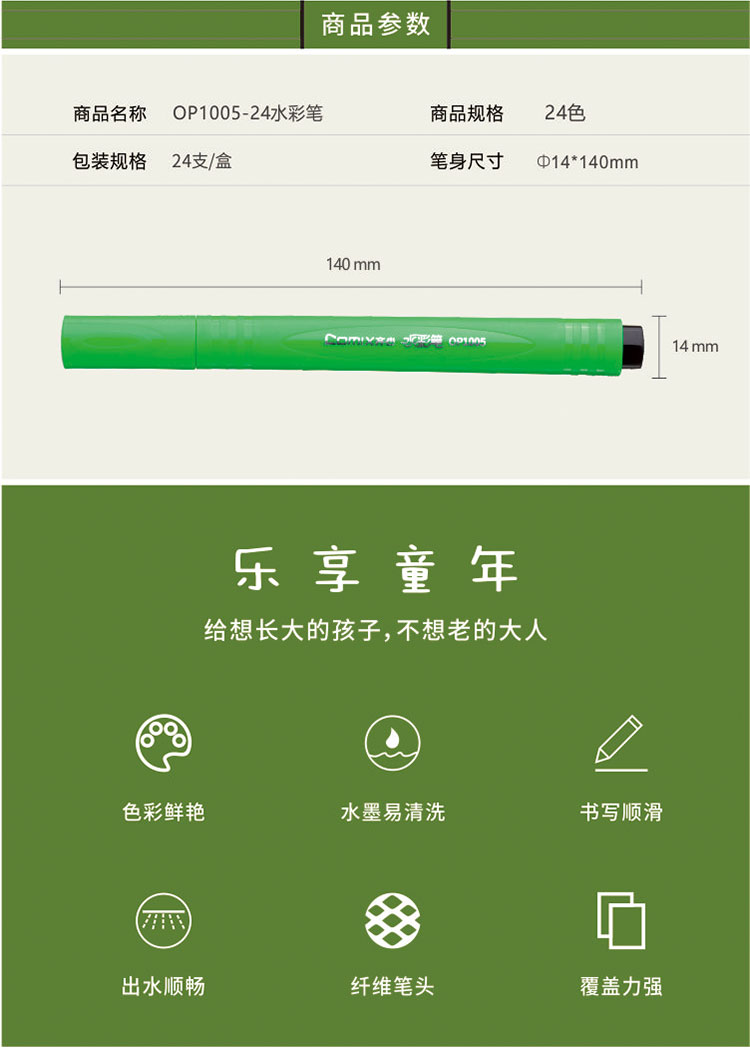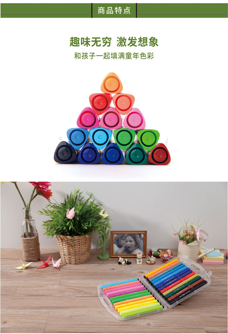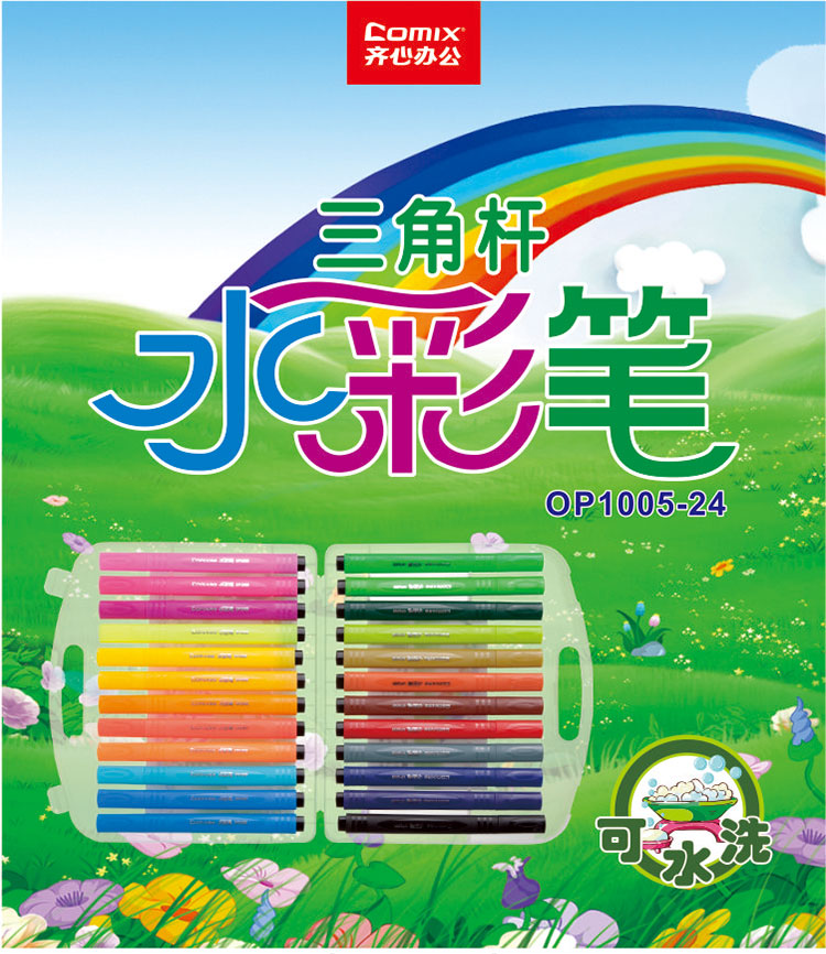 • 商品名称:齐心(Comix)OP1005-24 24色三角杆可洗水彩笔/绘画笔 1.5mm