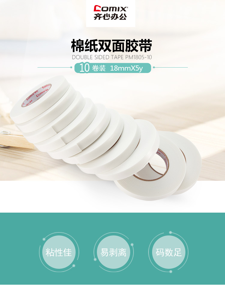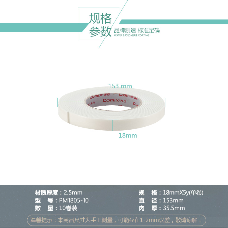 • 商品名称:齐心(COMIX)PM1805-10 双面泡棉胶带海绵胶带泡沫胶带18mm*5y(4.57米)