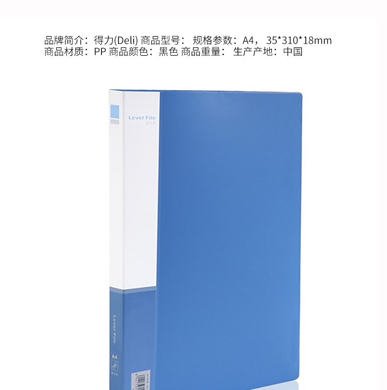 • 商品名称:得力(deli) 5301 A4单强力夹文件夹 插袋资料夹 12个/包 12个/包