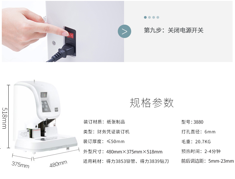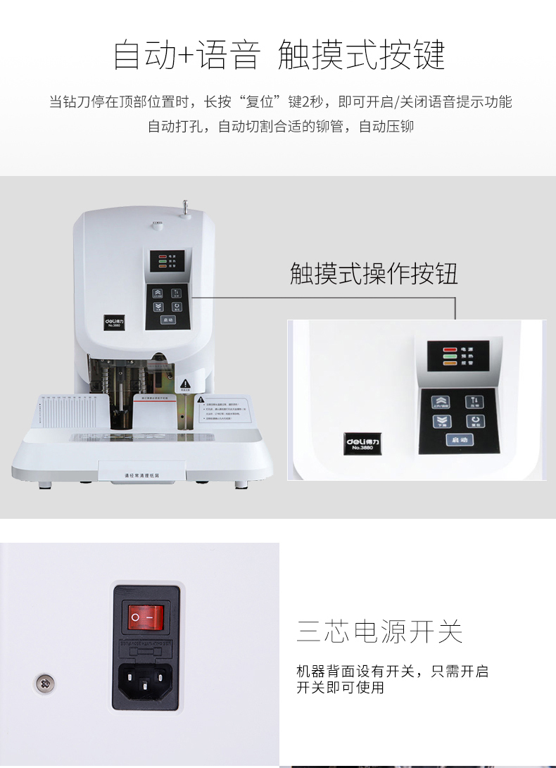 • 商品名称:得力(deli) 3880 全自动装订机 财务凭证装订机 电动打孔机 热熔胶装订机