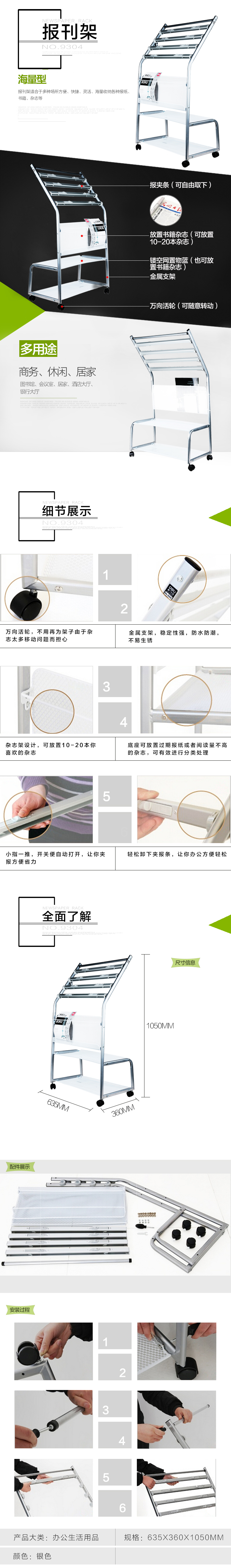 • 商品名称:得力(deli) 9304 五层铝合金夹条报纸架报刊架 杂志展示架 63.5*35*105cm