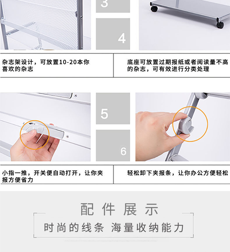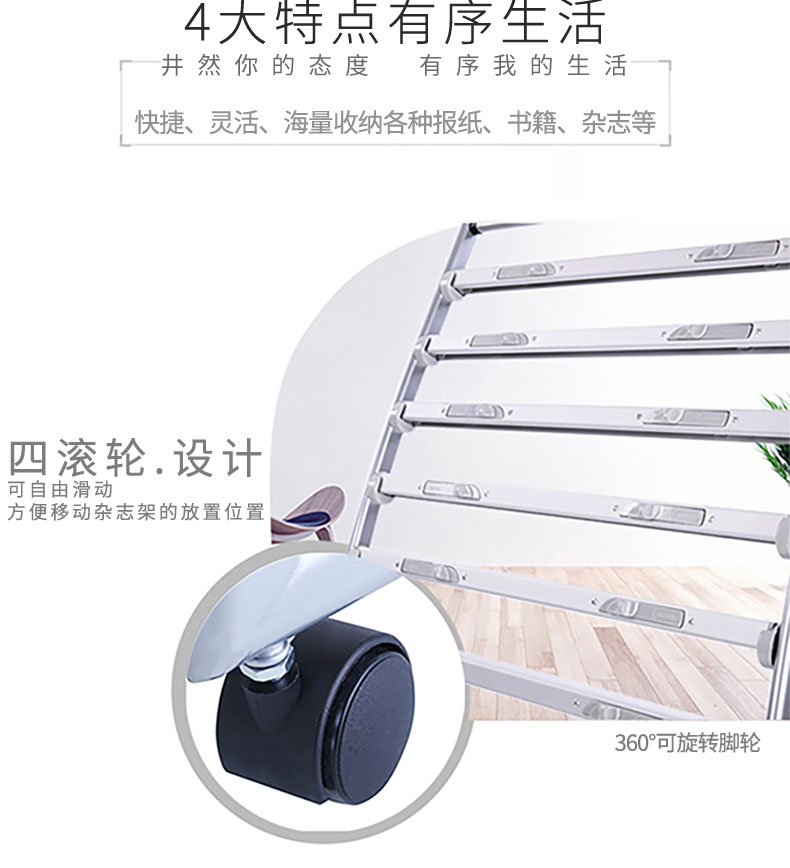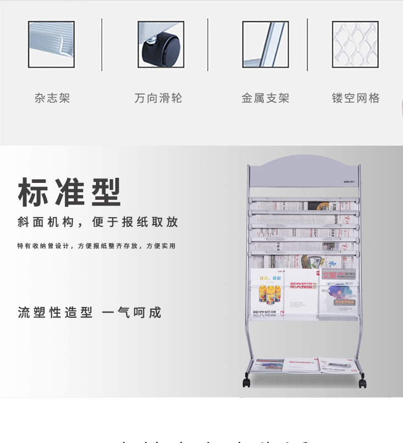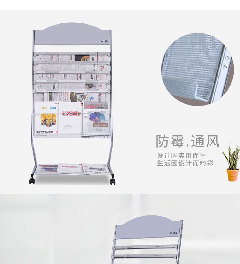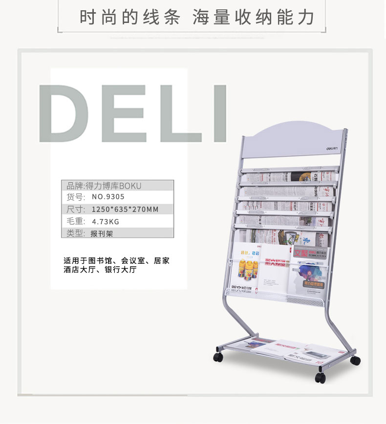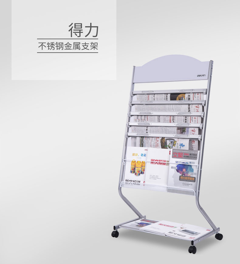 • 商品名称:得力(deli) 9305 金属报刊架杂志架书报架子资料展示架(635*360*1250mm)