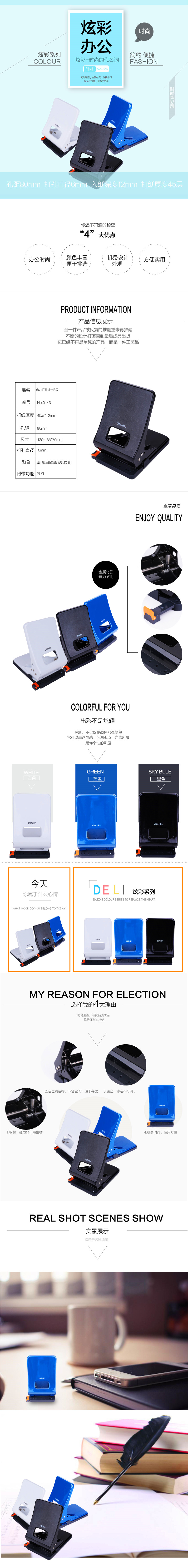 • 商品名称:得力(deli) 0143 打孔机手压式财务装订45张可打 6mm孔 80mm孔距