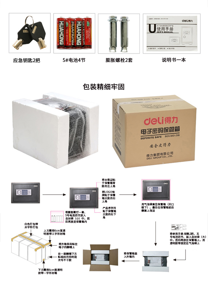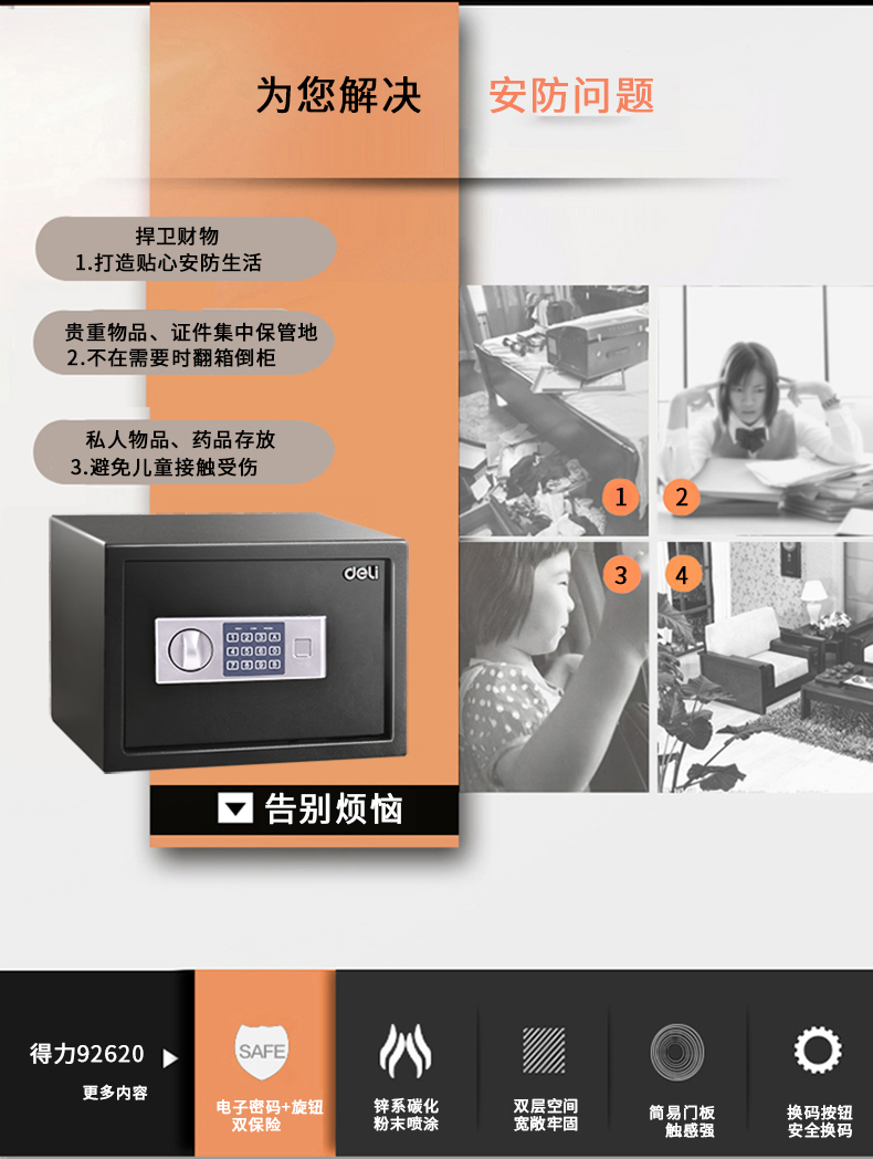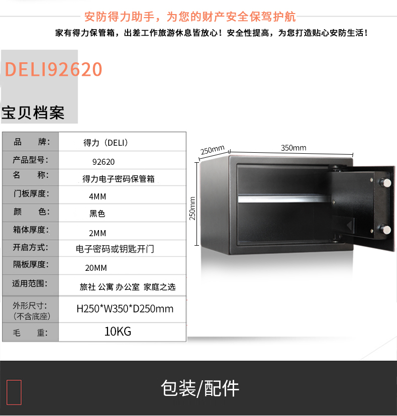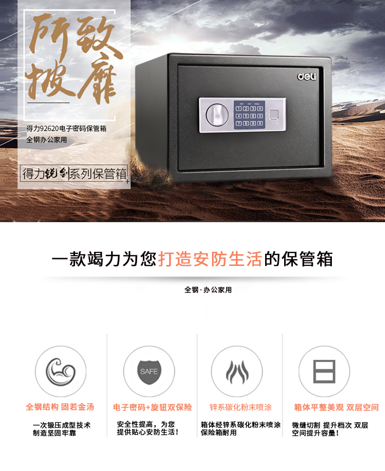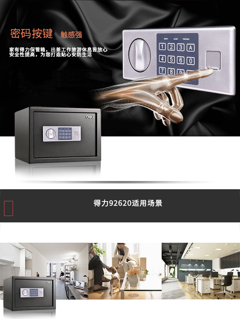 • 商品名称:得力(deli) 92620 电子密码保管柜 高25cm小型入墙入柜保管箱