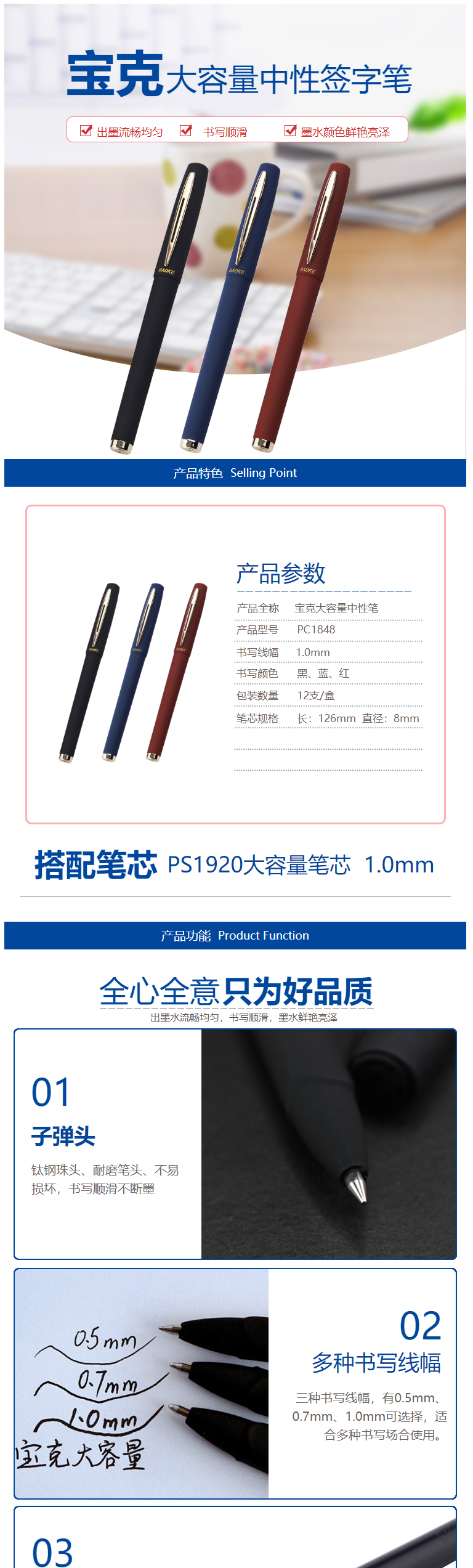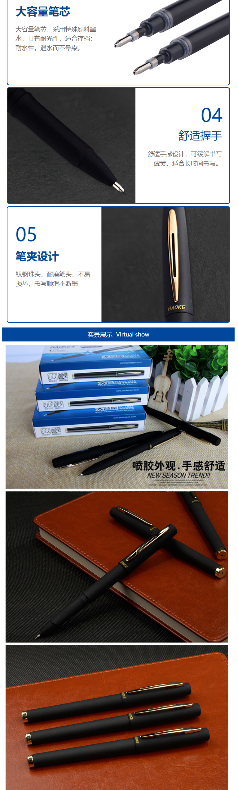 • 商品名称:宝克(BAOKE) PC1848 中性笔大容量中性笔黑色磨砂笔杆签字笔 12支/盒 (黑色)
