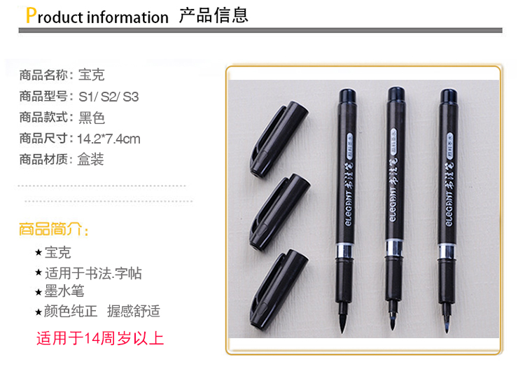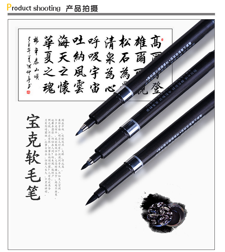 • 商品名称:宝克(BAOKE) S3 秀丽笔软笔书法笔科学笔学生用新毛笔绘画勾线笔签到笔练字软头 小楷 12支/盒 (S3 小楷)