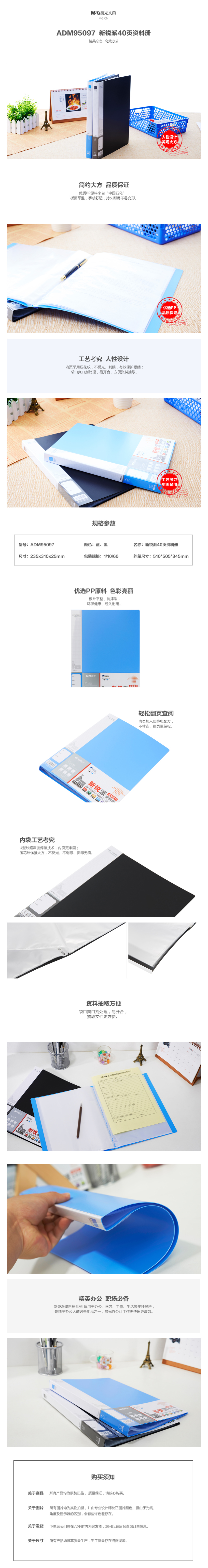 • 商品名称:晨光(M&G) 95097 A4/40页新锐派资料册/文件册 蓝色