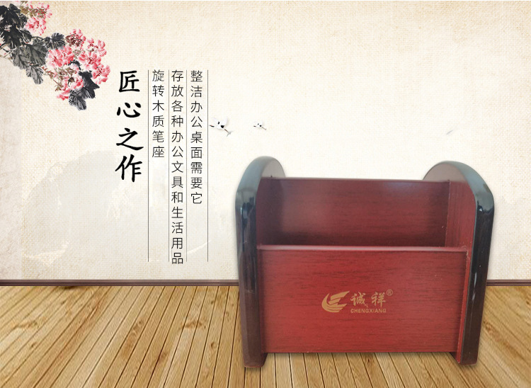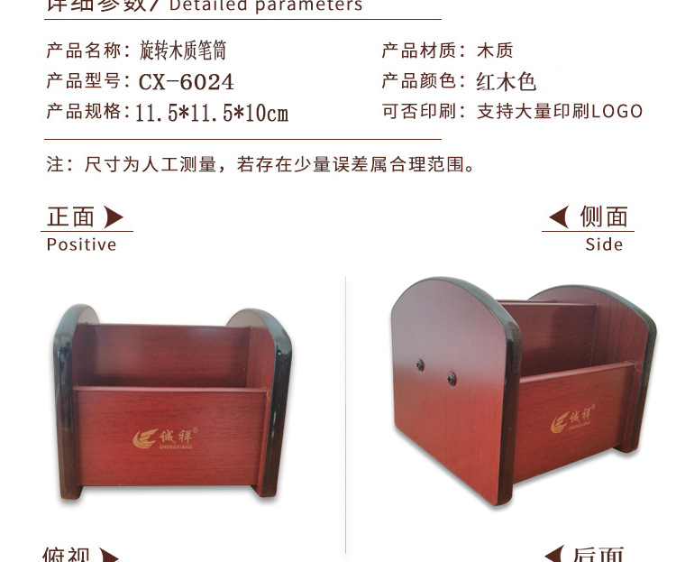 • 商品名称:诚祥 6024 办公桌摆件可旋转木质多功能广告笔筒桌面收纳实木笔座