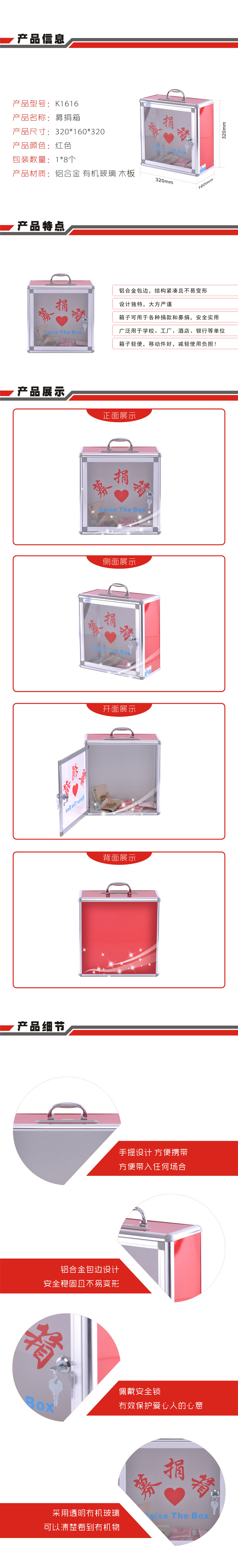 • 商品名称:富祥 K1616 铝合金爱心募捐箱 制作医院小区学校用铝合金募捐捐款箱