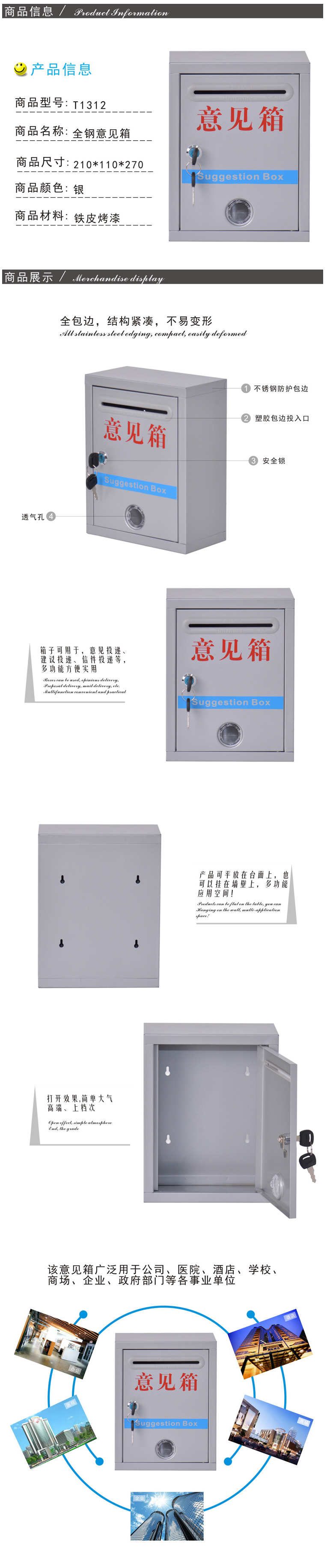 • 商品名称:富祥 T1312 意见箱 全钢铁制 小号意见箱 建议投诉举报可用