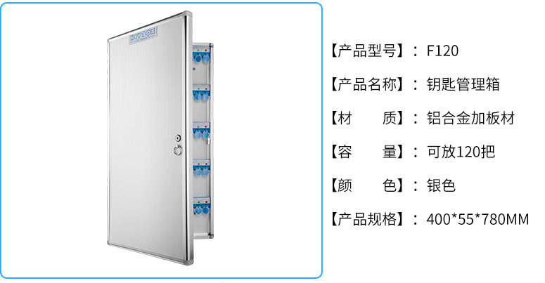 • 商品名称:富祥 F120 钥匙箱 120位铝合金钥匙箱 学校酒店用铝合金挂钥匙管理箱