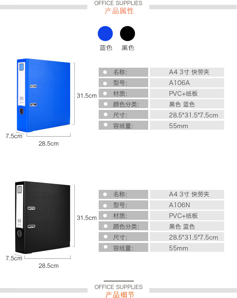 • 商品名称:齐心(Comix) A106N 加强型快劳夹/A4文件夹 黑色