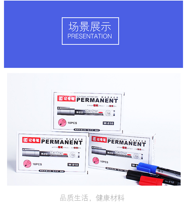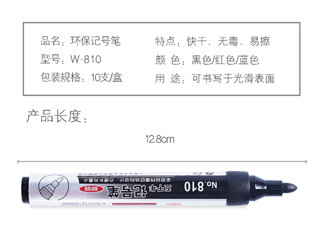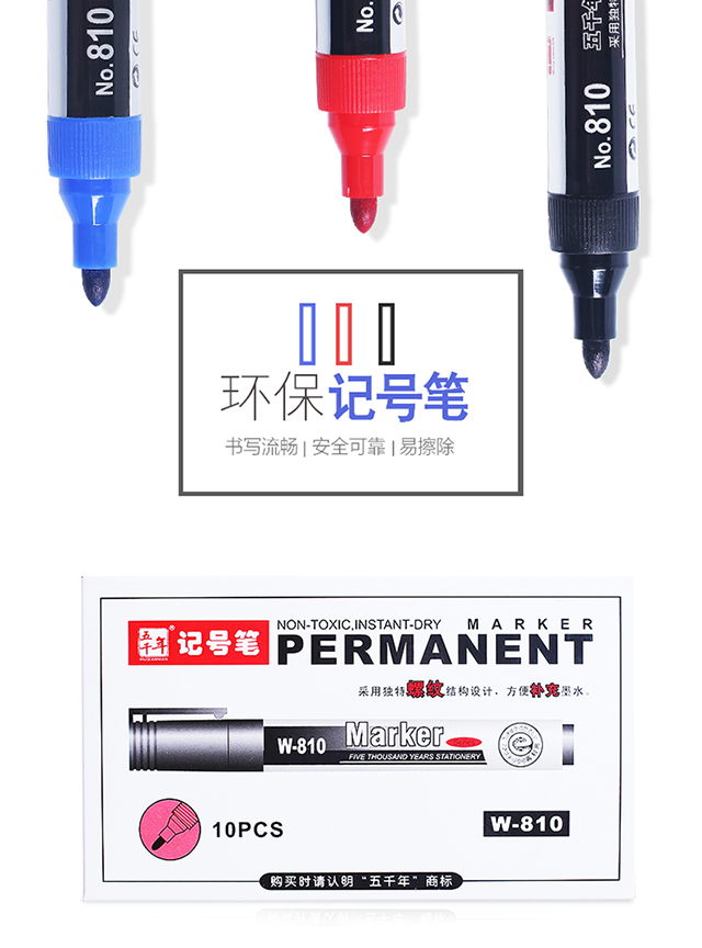 • 商品名称:五千年 W-810 记号笔环保油性记号笔箱头笔擦不掉大头笔可加墨 10支/盒 (红色)