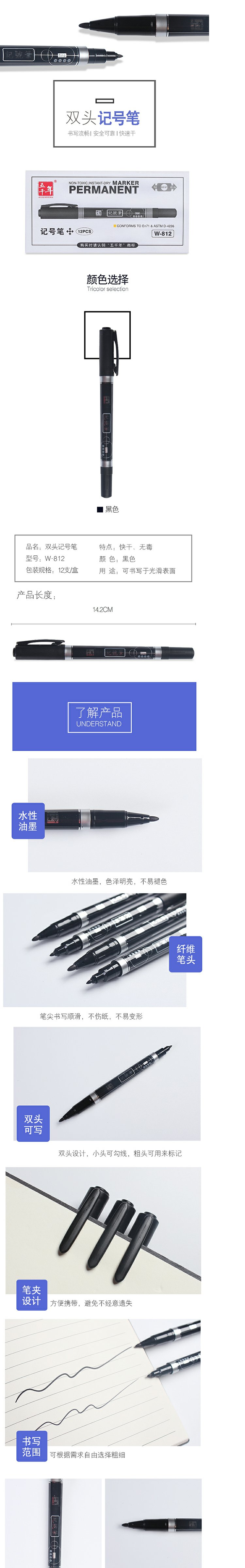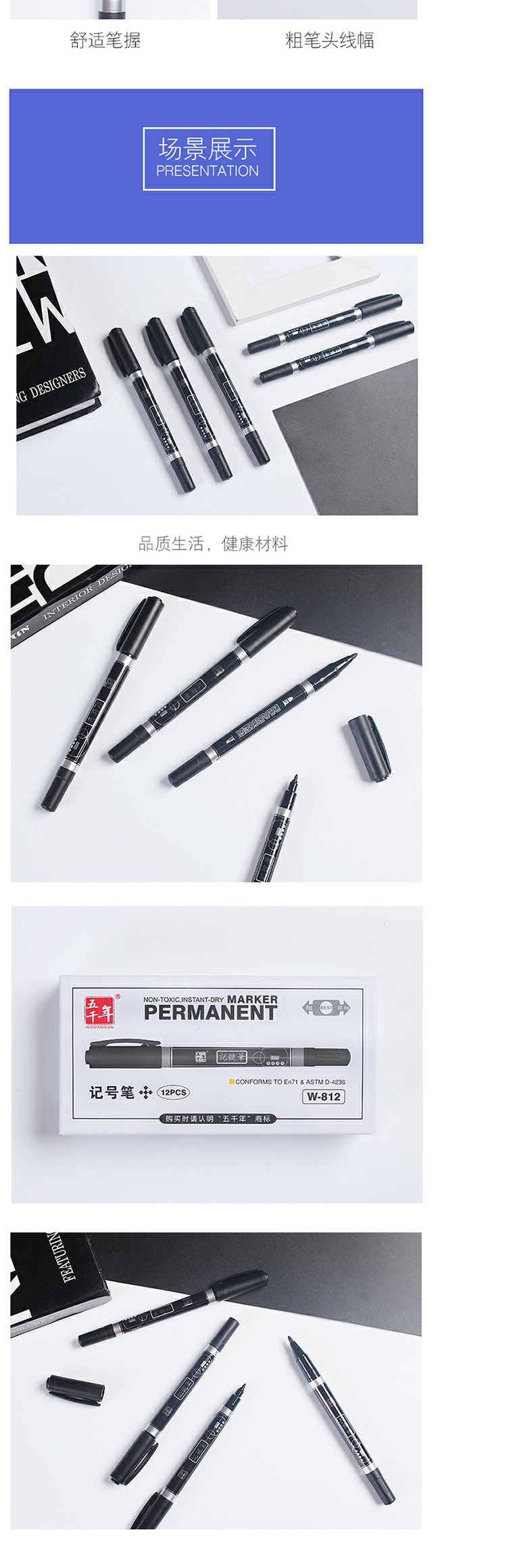 • 商品名称:五千年 W-812 双头记号笔小双头勾线笔描边笔黑色记号笔油性笔画画 12支/盒