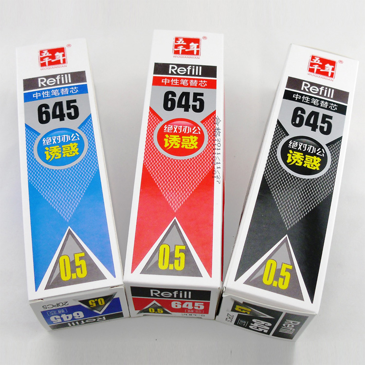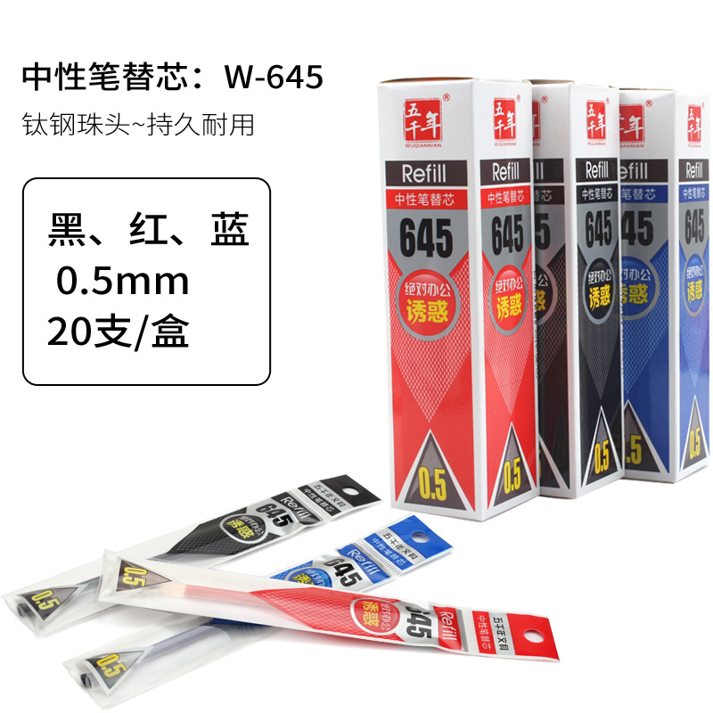 • 商品名称:五千年 W-645 替芯中性笔芯 替芯 通用水笔芯 0.5mm中性笔笔芯 20支/盒 (红色)