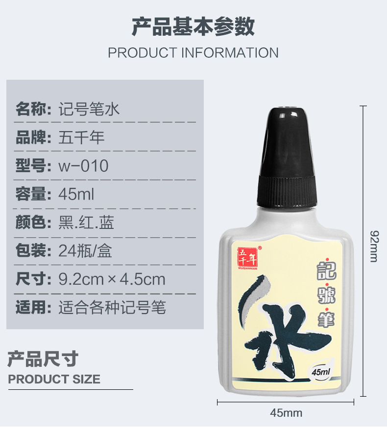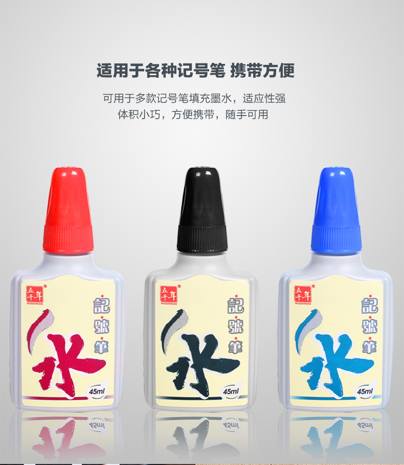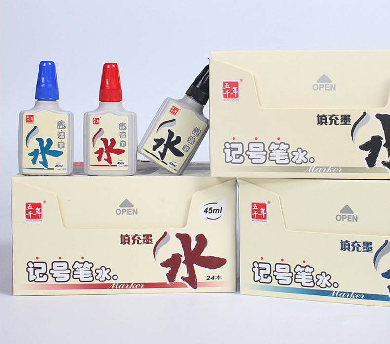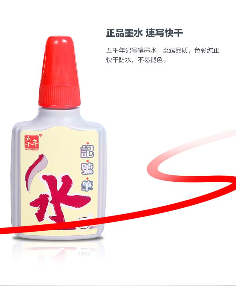 • 商品名称:五千年 W-010 记号笔墨水 大容量记号笔补充液 24瓶/盒 (蓝色)