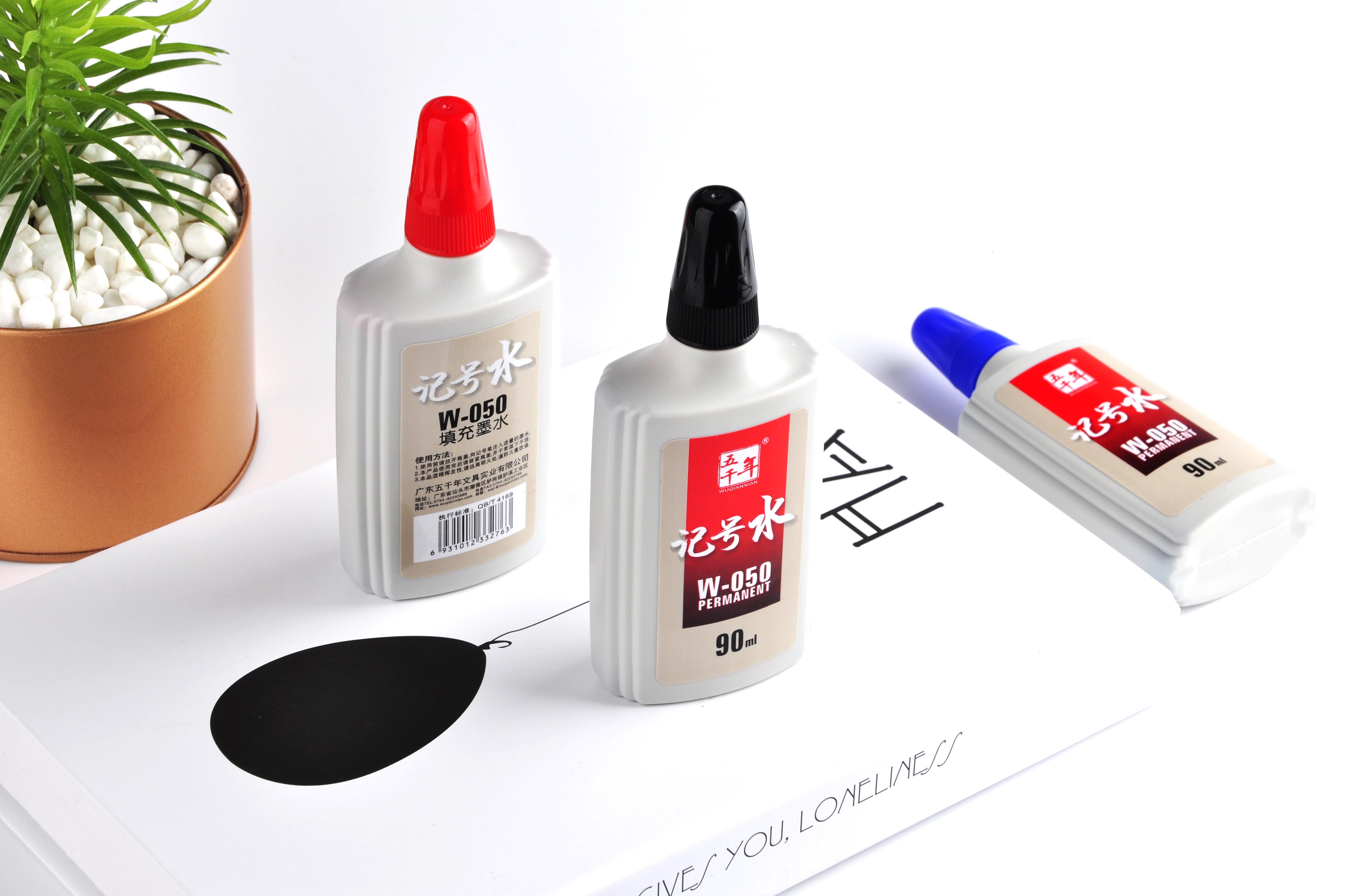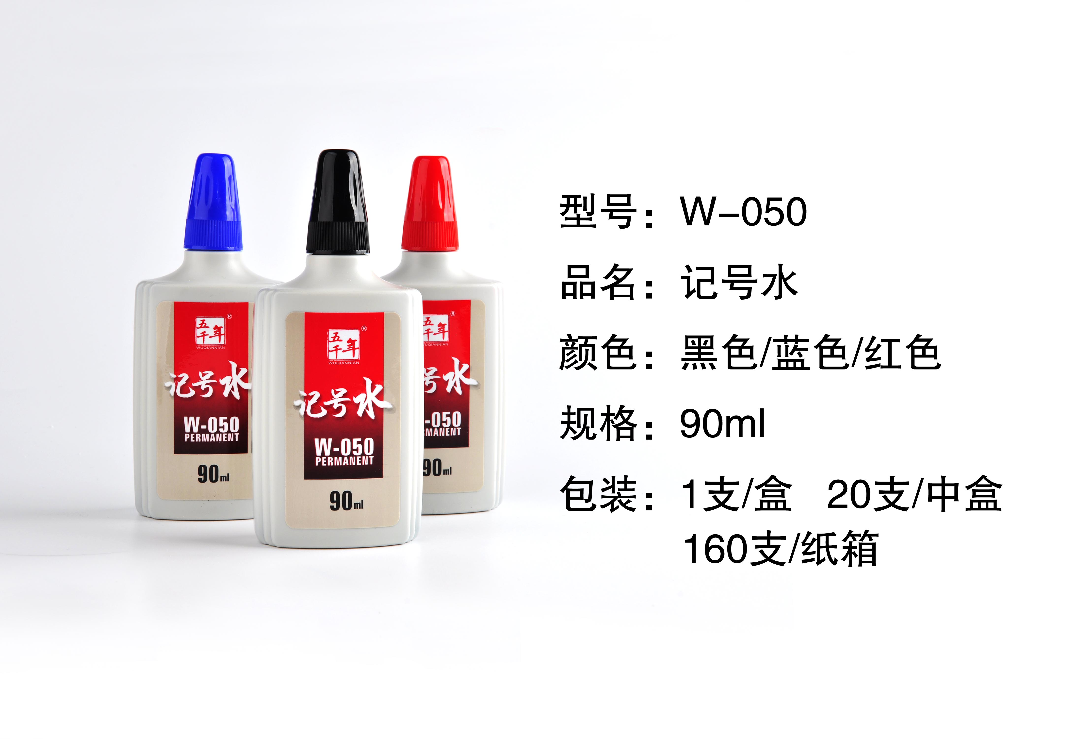 • 商品名称:五千年 W-050 记号笔墨水 记号笔墨水补充液可擦笔水 90ml大容量 20瓶/盒 (红色)