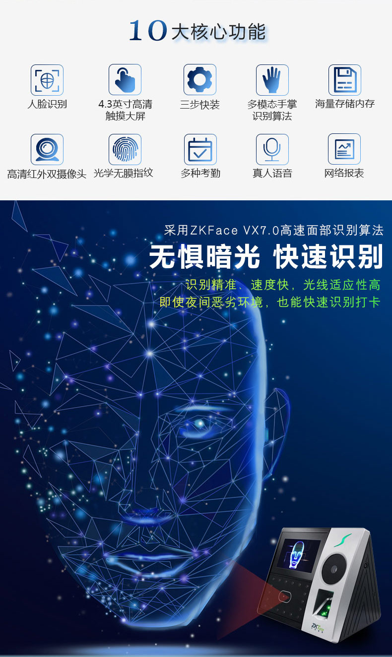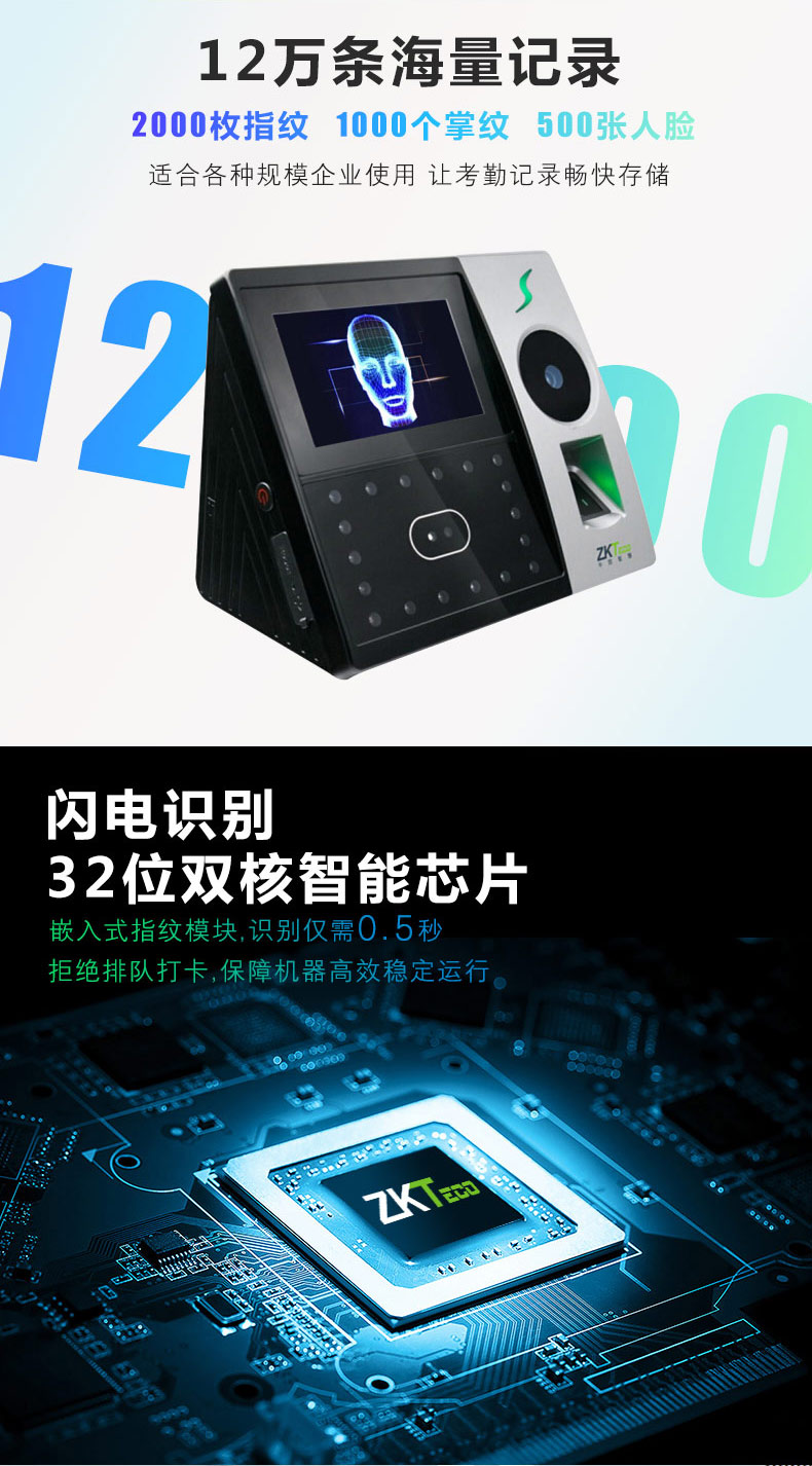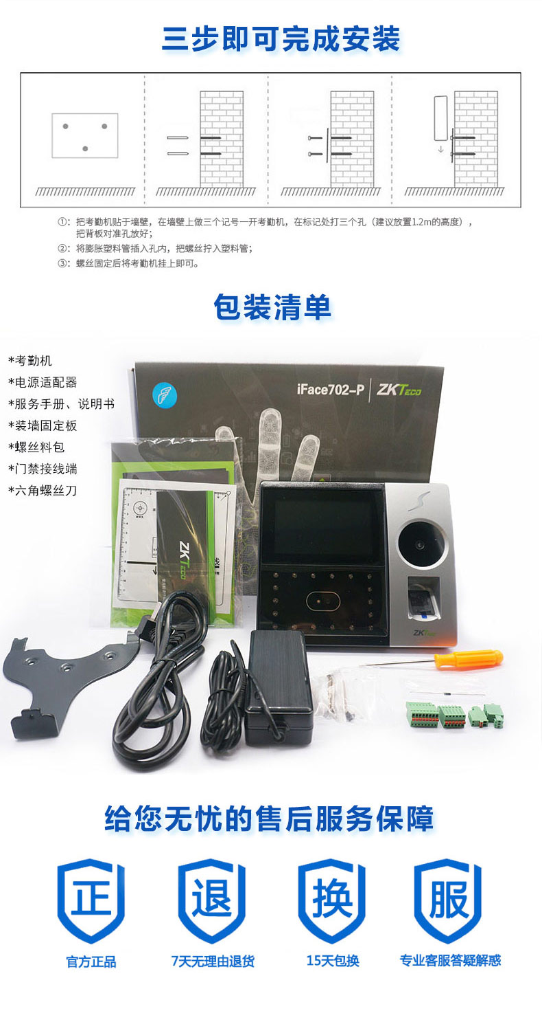 • 商品名称:中控智慧(ZKTeco) iFace702-P 人脸指纹掌静脉混合识别考勤机 智能WIFI大容量高速打卡机