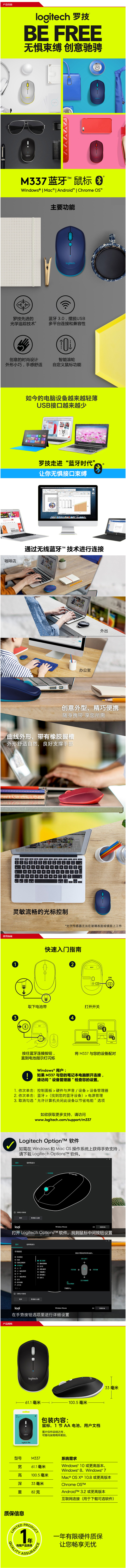• 商品名称:罗技(Logitech) M337 鼠标 蓝牙无线鼠标笔记本台式电脑办公mac鼠标(蓝色)