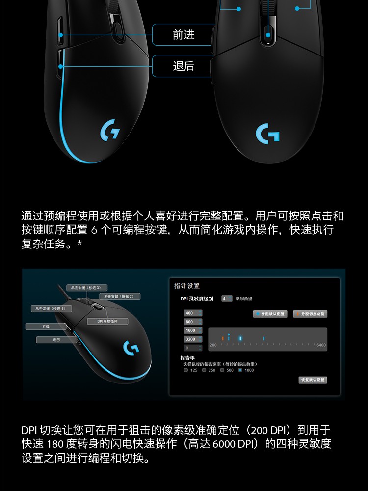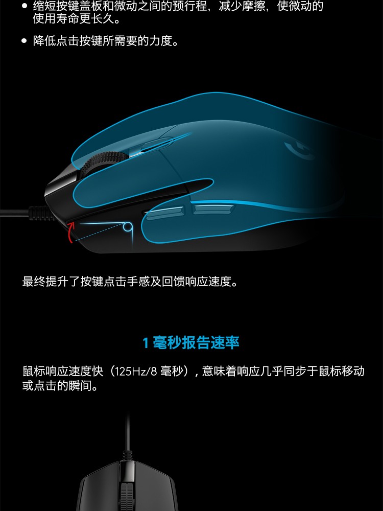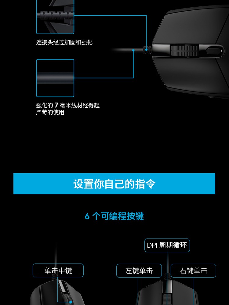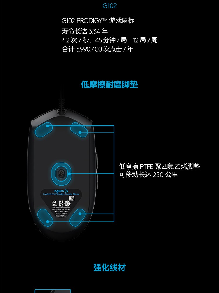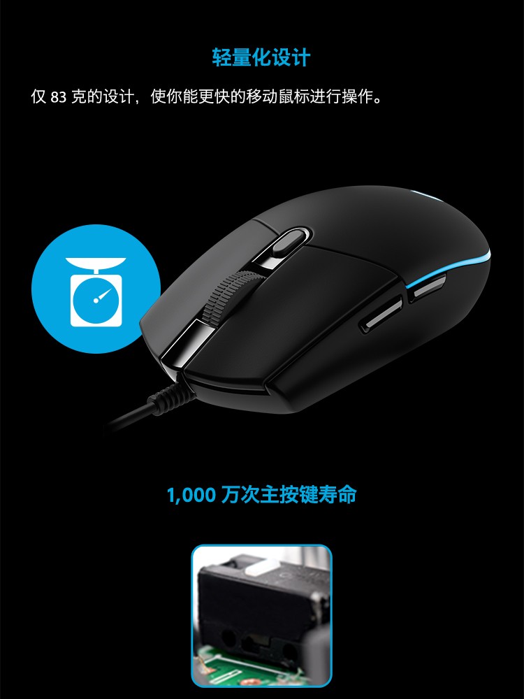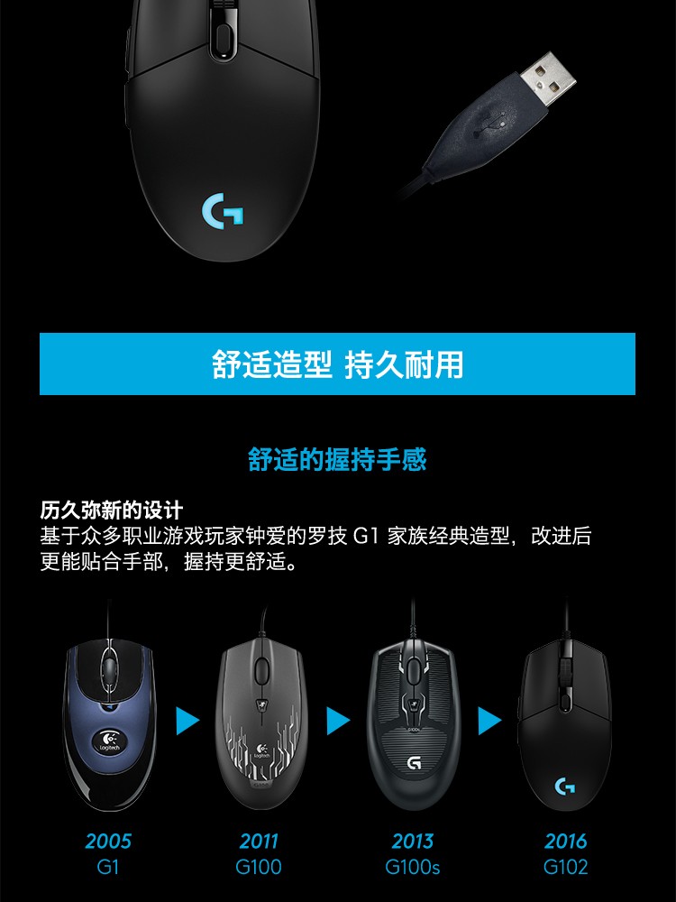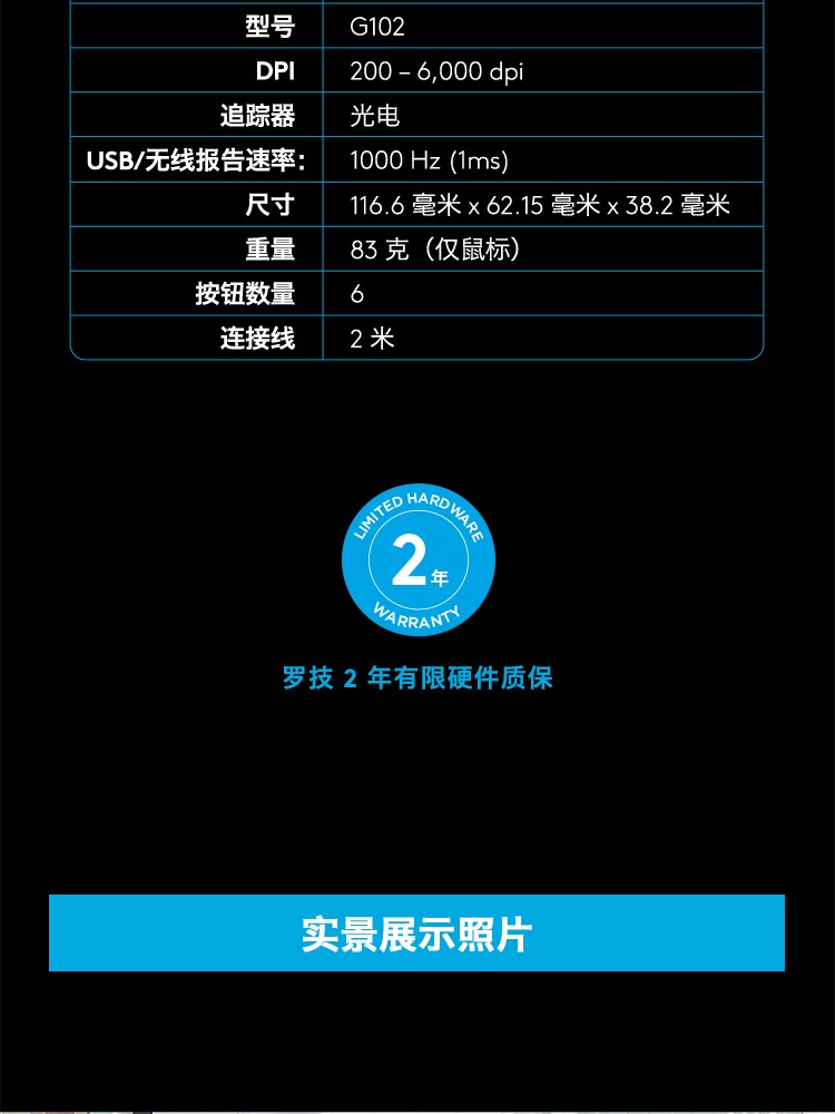 • 商品名称:罗技(Logitech) G102 鼠标有线鼠标 游戏鼠标 RGB鼠标 轻量化设计 设计师鼠标