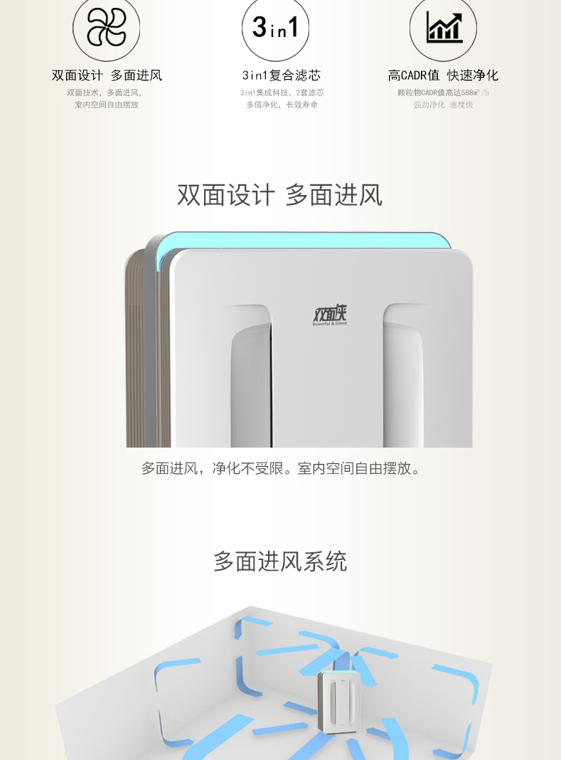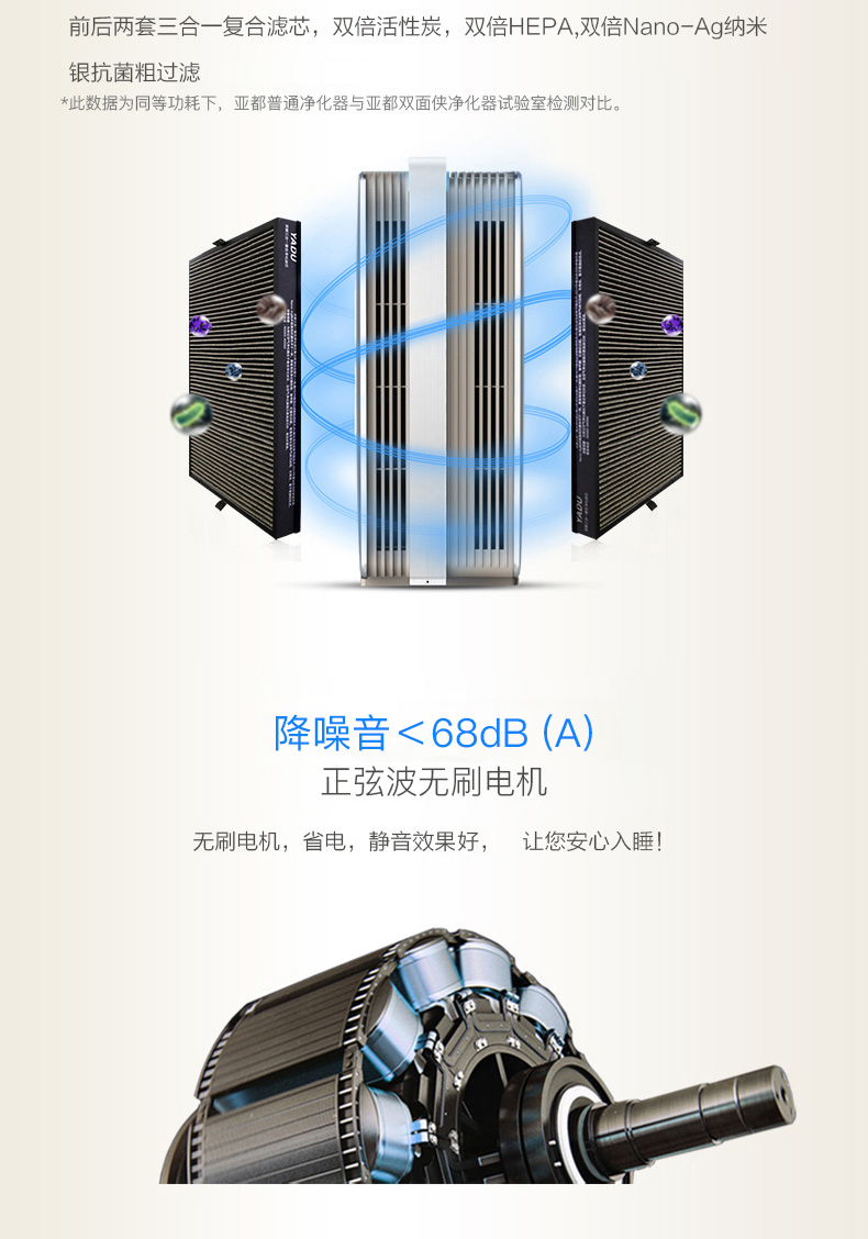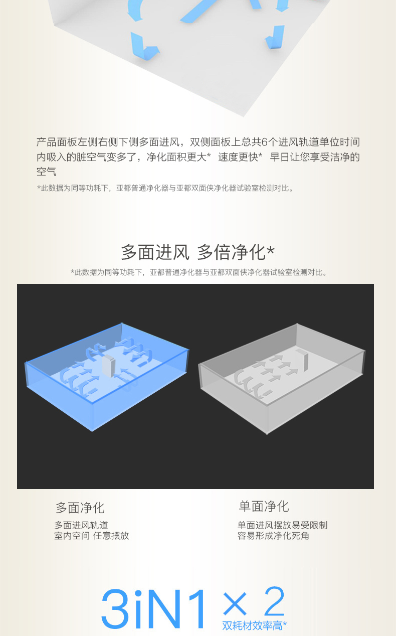• 商品名称:亚都(YADU) KJ588G-P5 空气净化器双面侠 三合一滤网双滤芯除甲醛除PM2.5