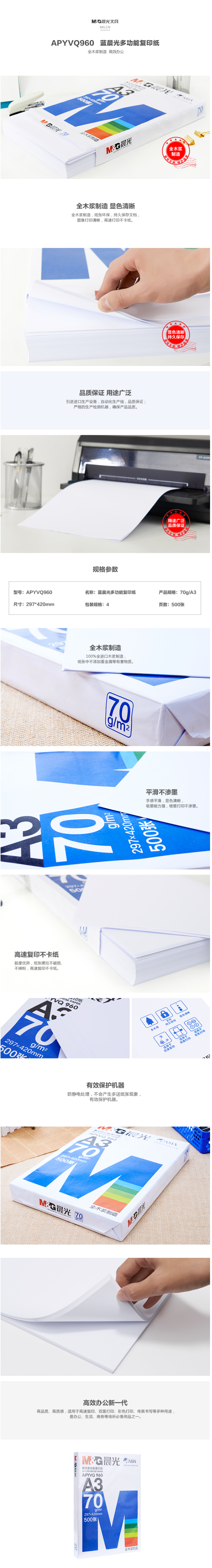 • 商品名称:晨光(M&G) APYVR960 A3复印纸 蓝晨光70g 4包/箱