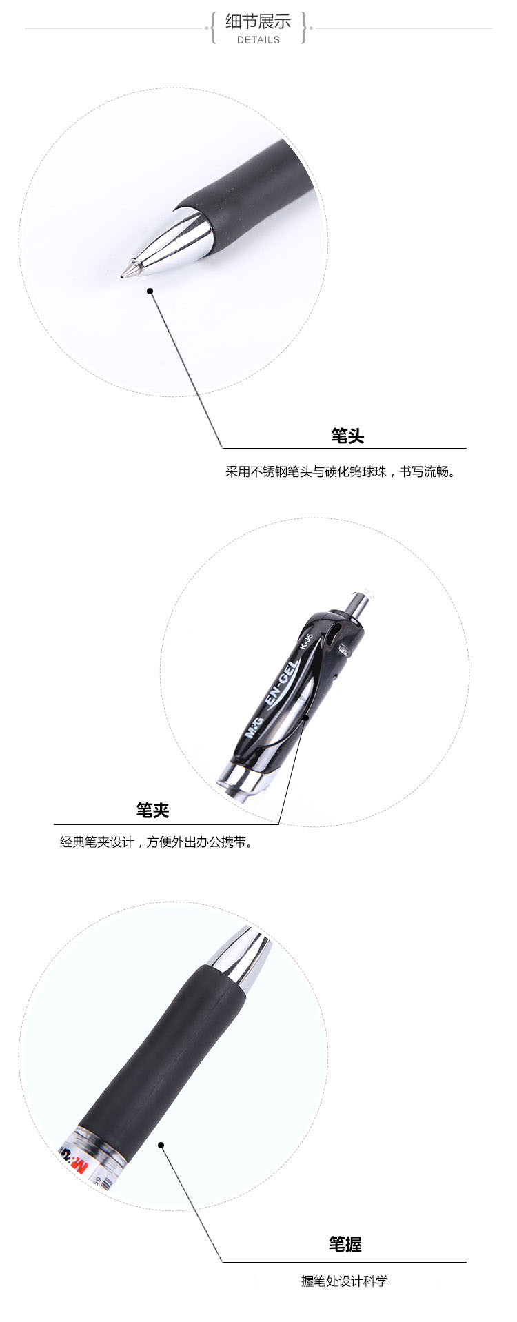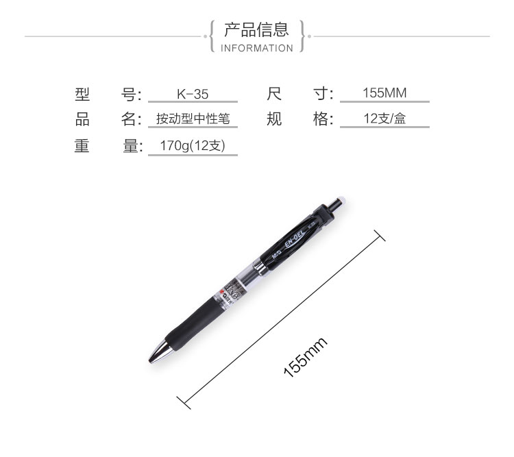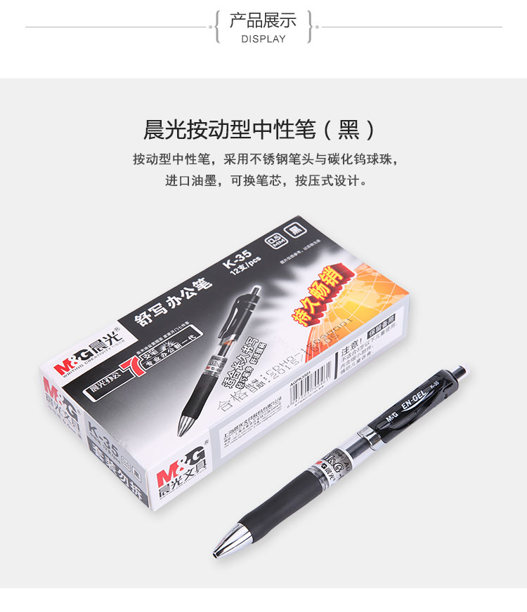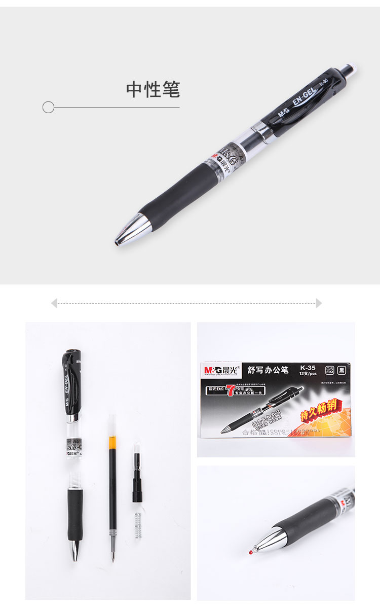 • 商品名称:晨光(M&G)K35 经典办公按动子弹头中性笔签字笔水笔0.5mm12支装 黑色