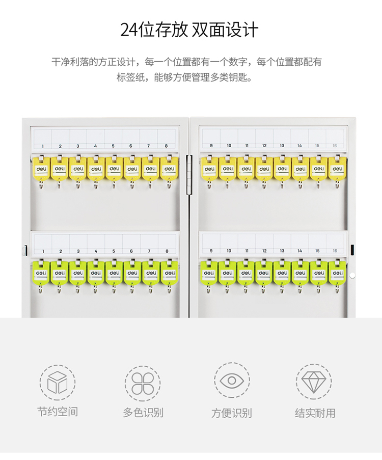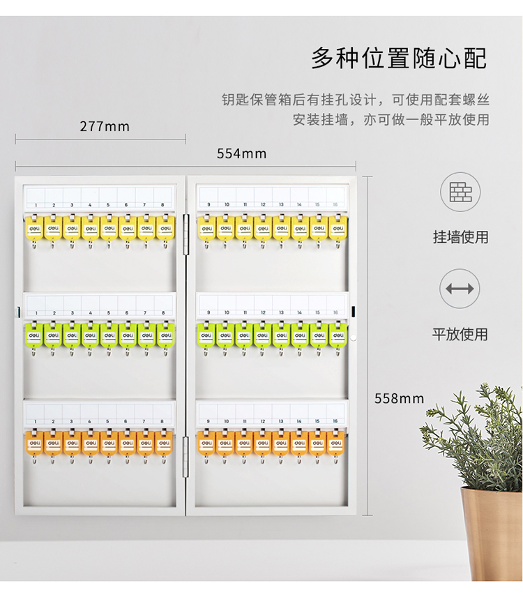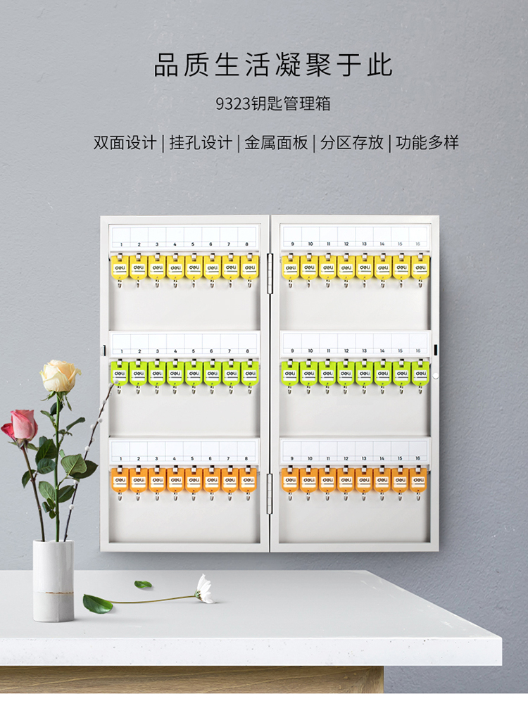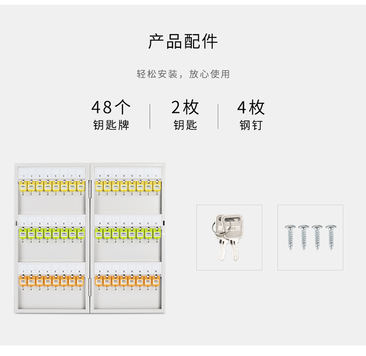 • 商品名称:得力(deli)9323 安全实用钥匙管理箱(48位)三排设计