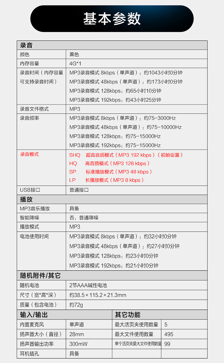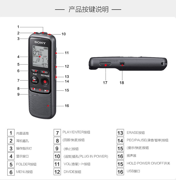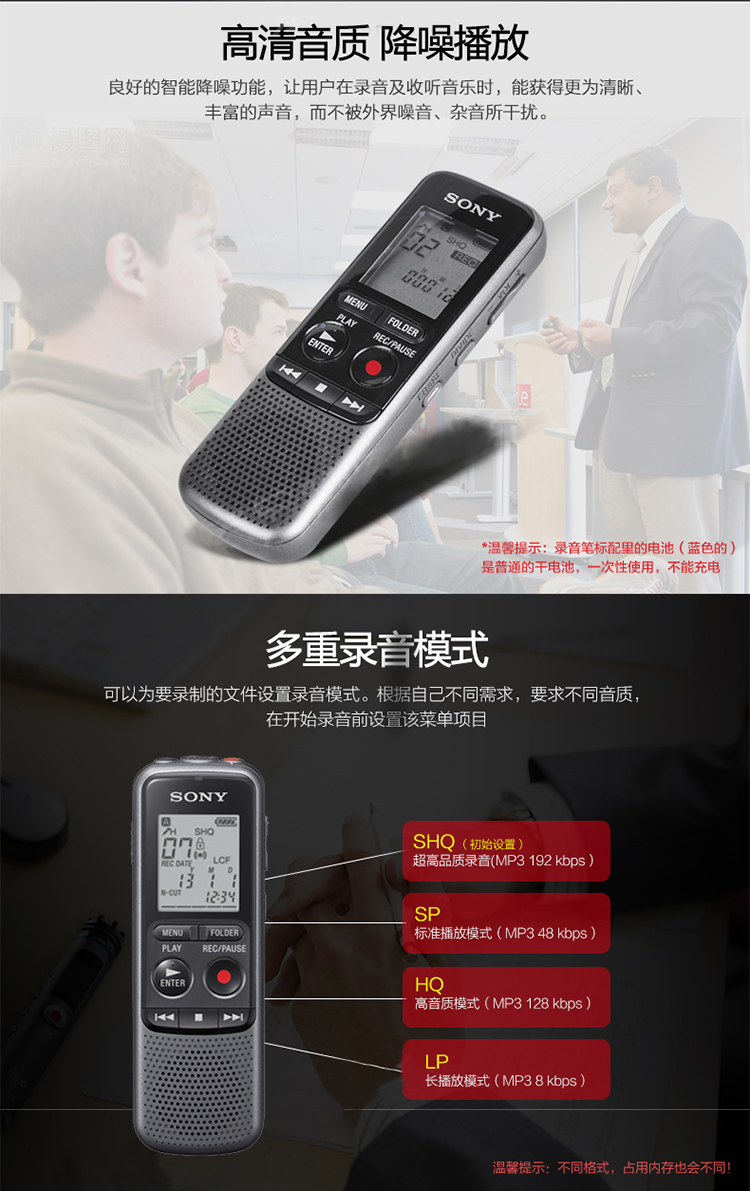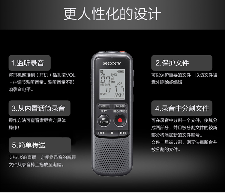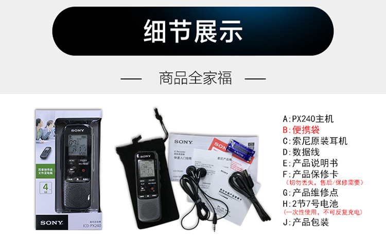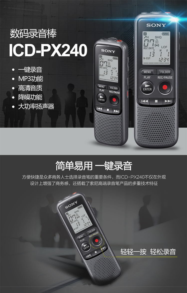• 商品名称:索尼(SONY) ICD-PX240 数码录音笔 4G 黑色