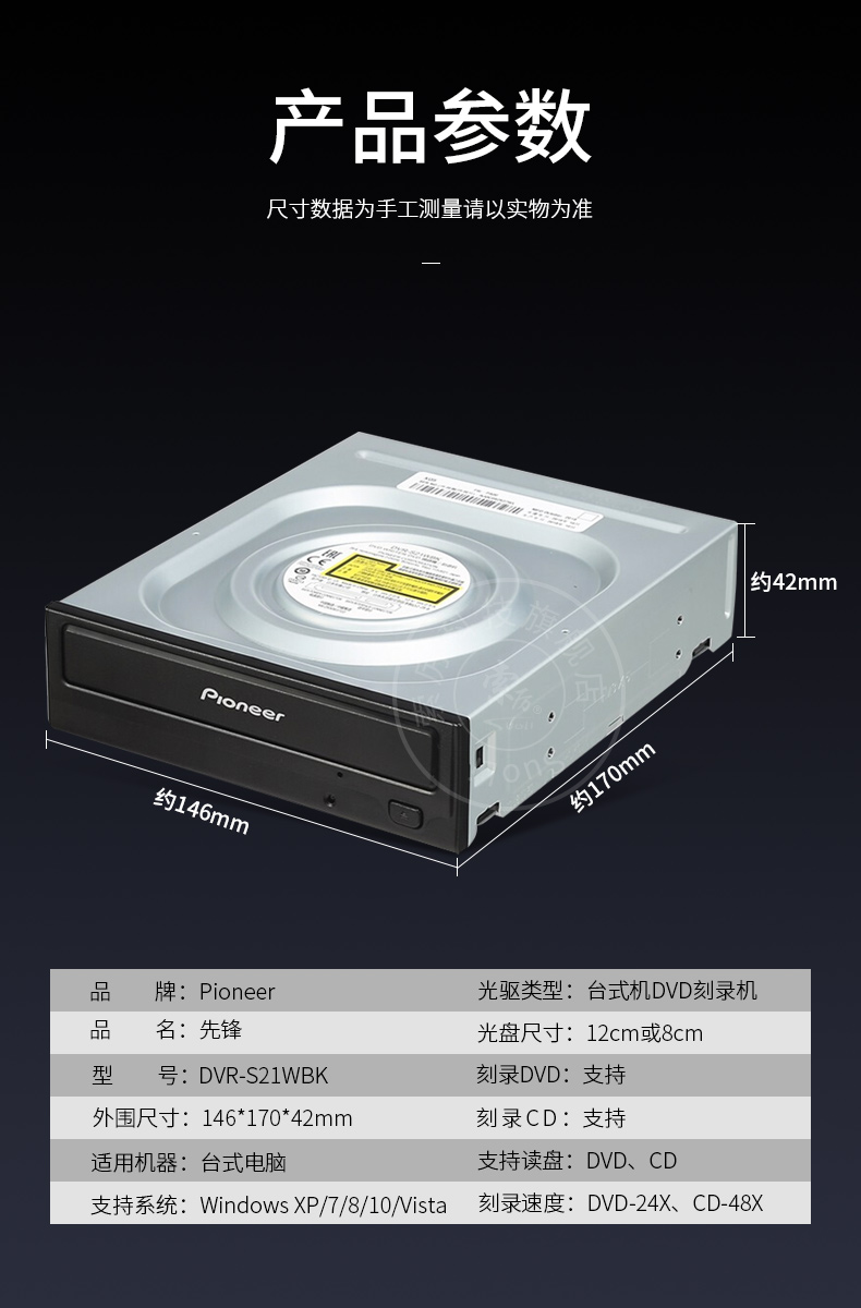 • 商品名称:先锋(Pioneer)S21WBK 24倍速 SATA接口内置DVD刻录机 台式机光驱 黑色