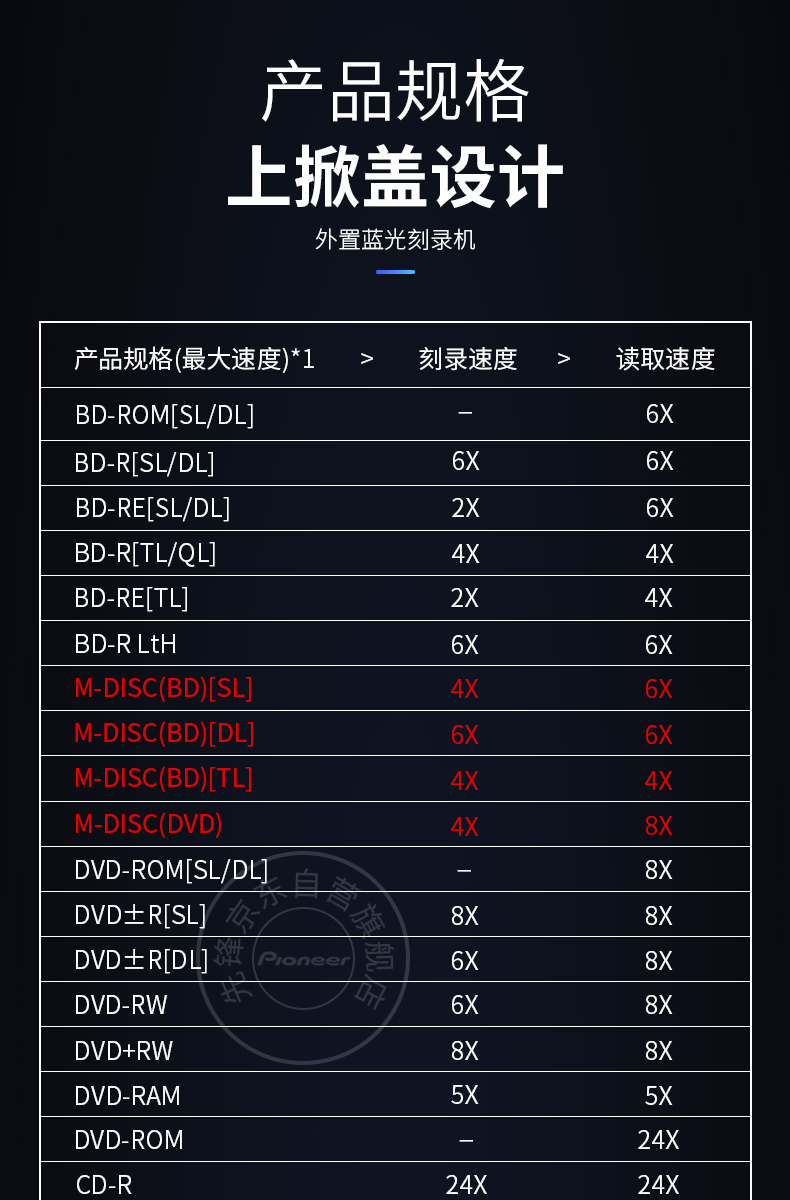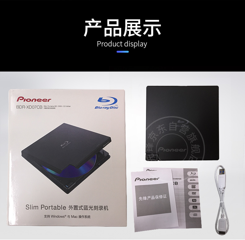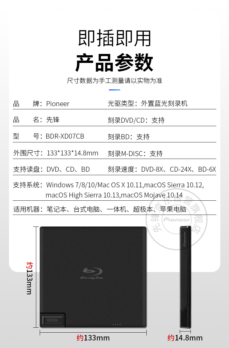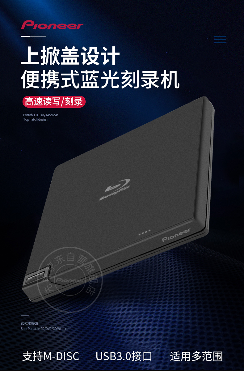先锋(Pioneer)BDR-XD07CB 6X蓝光刻录机/上掀盖设计/支持BD/M-DISC(千年盘)刻录光驱