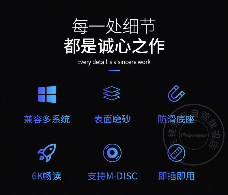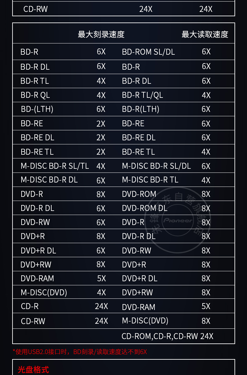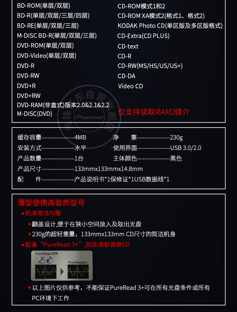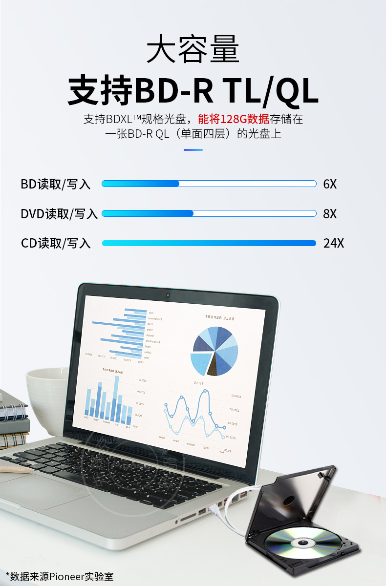先锋(Pioneer)BDR-XD07CB 6X蓝光刻录机/上掀盖设计/支持BD/M-DISC(千年盘)刻录光驱