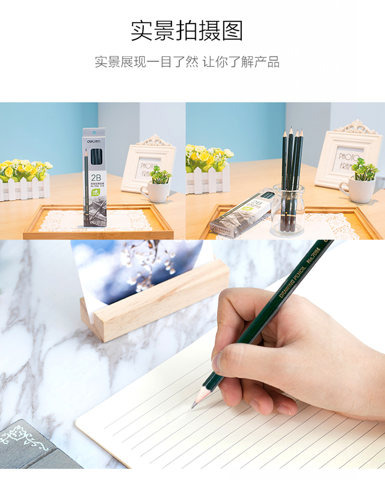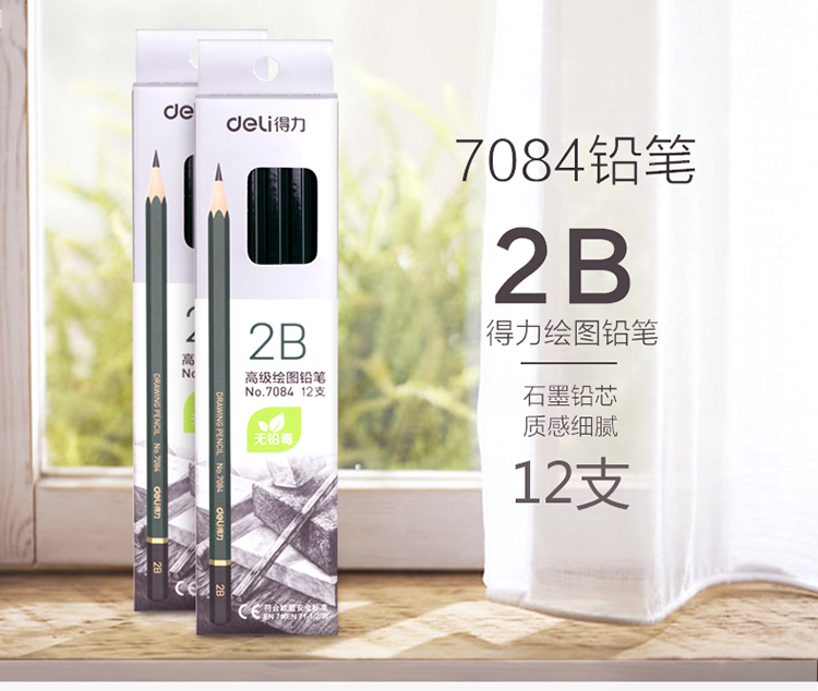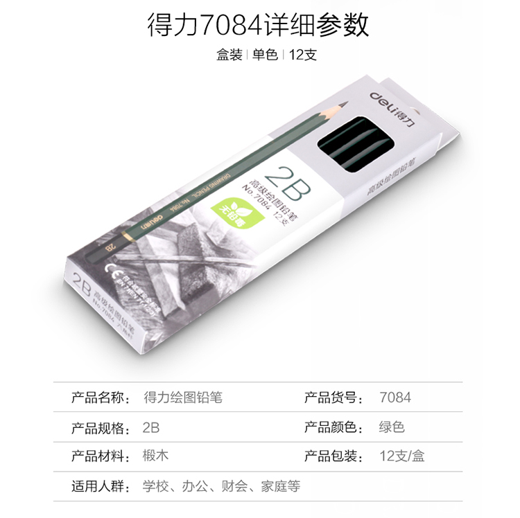 • 商品名称:得力(deli)7084 2B铅笔 木质铅笔 12支/盒