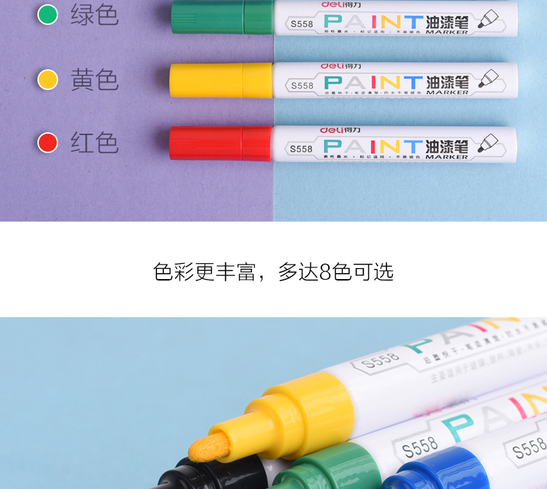 • 商品名称:得力(deli) S558 速干记号笔/油性轮胎笔/油漆笔/物流大头笔/签到笔 12支/盒 红色