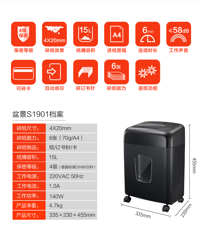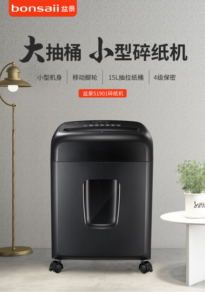 • 商品名称:盆景(bonsaii)S1901 碎纸机 小型碎纸机 办公纸张文件粉碎机电动碎卡机