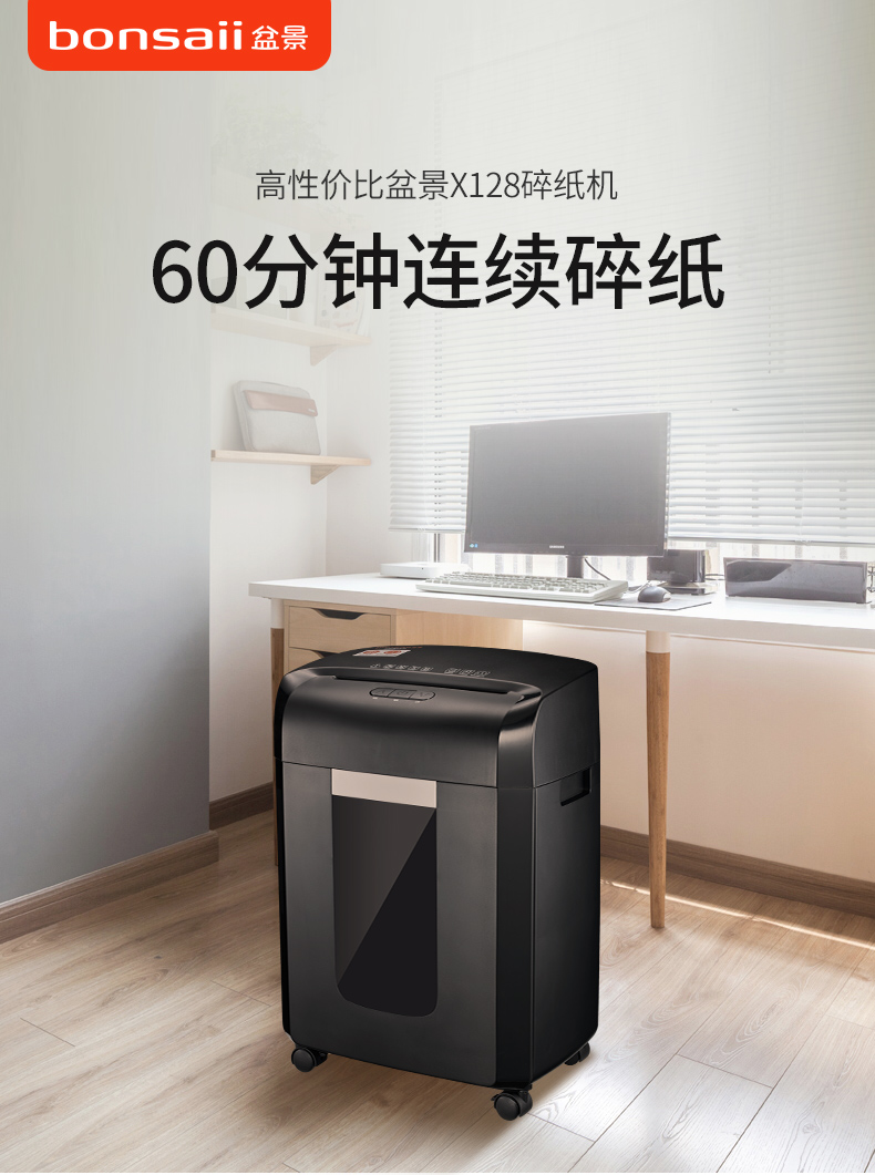 盆景(bonsaii)X128 碎纸机 德国5级中型高保密长时间办公商用碎纸机 颗粒文件粉碎机