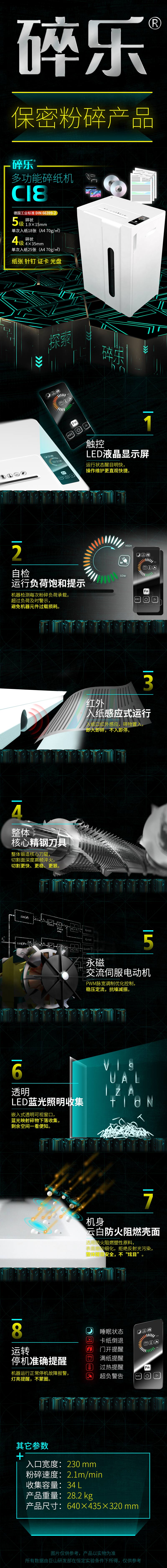 • 商品名称:碎乐(Ceiro)C18 自动碎纸机 电动静音碎纸机 多功能办公碎纸 条状4*35mm