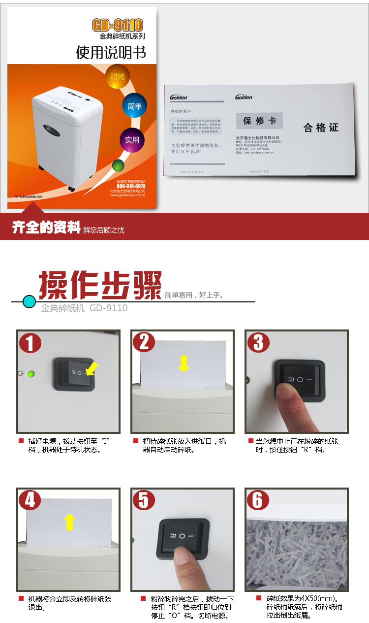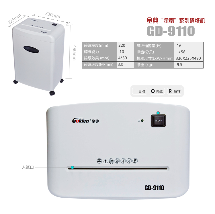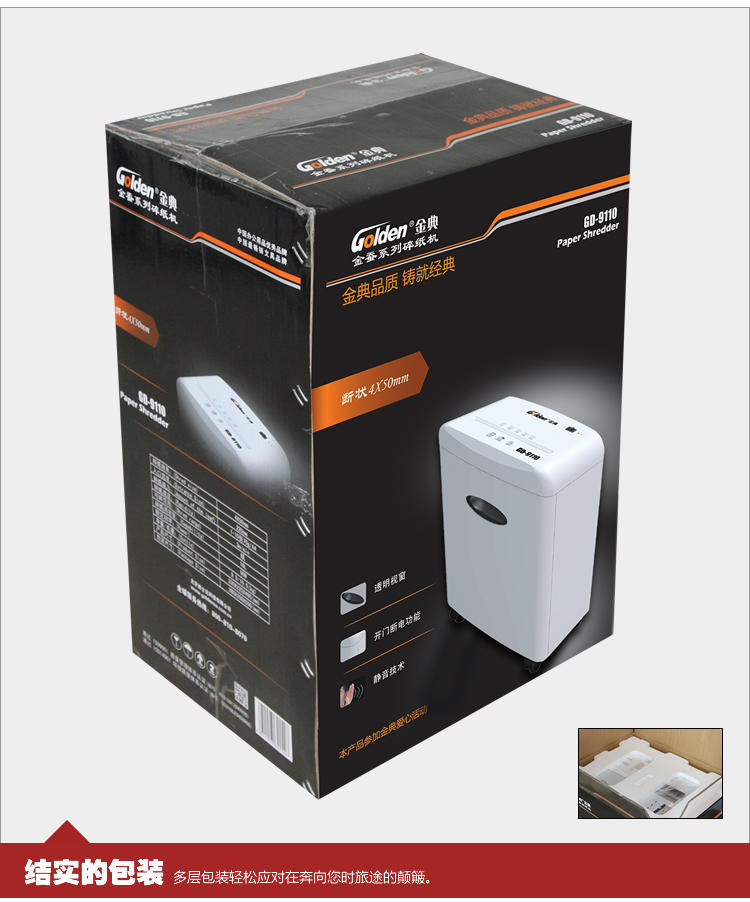 • 商品名称:金典(Golden)GD-9110 碎纸机电动办公碎纸机 段状家用粉碎机 静音碎纸机